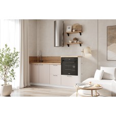 Модульная кухня Этна Софт Грей выполнена в самом трендовом декоре этого года – выбеленном нежно-сером оттенке с пудровой текстурой Soft. Такой декор фасадов гармонично дополняет корпус с древесным рисунком эндгрей необработанный.