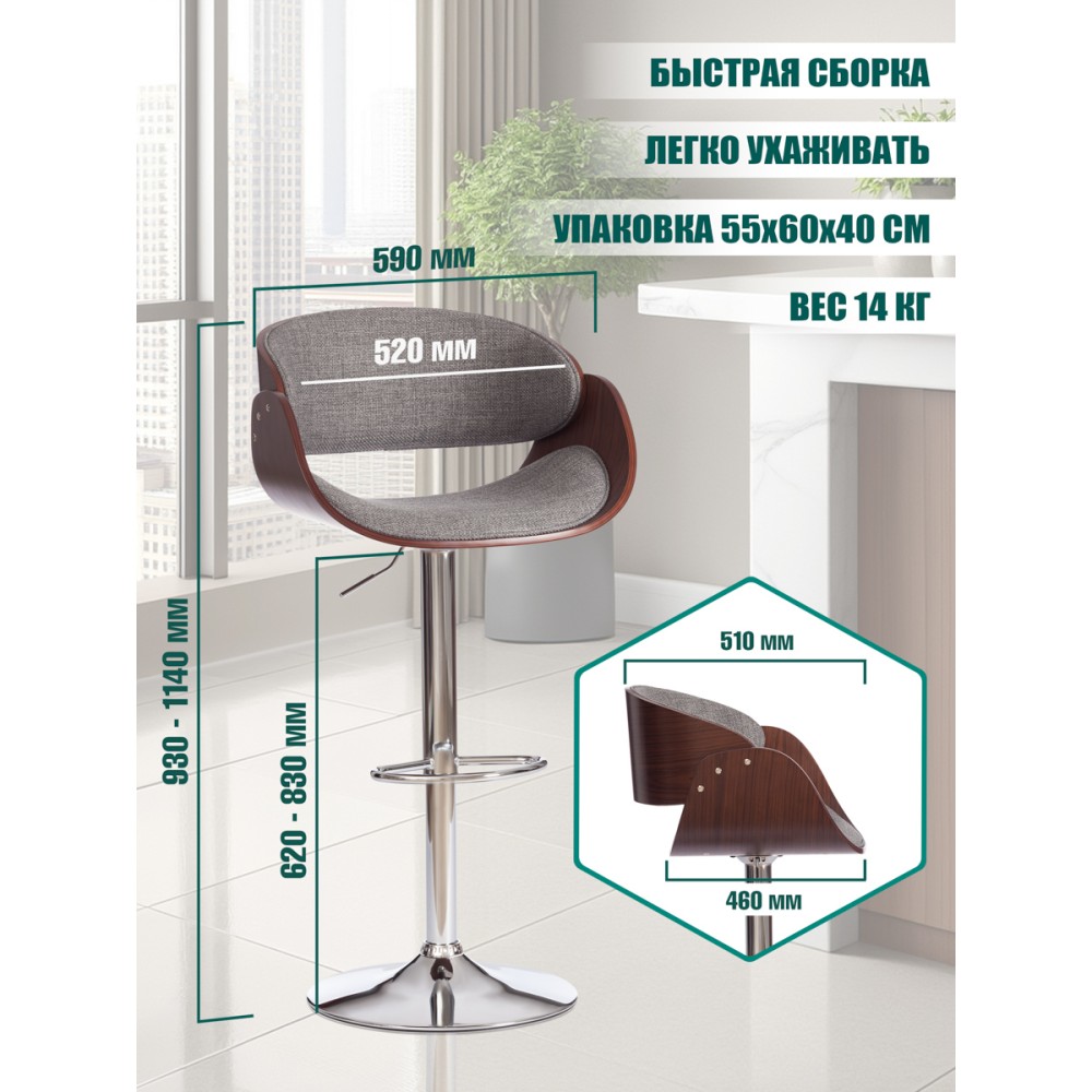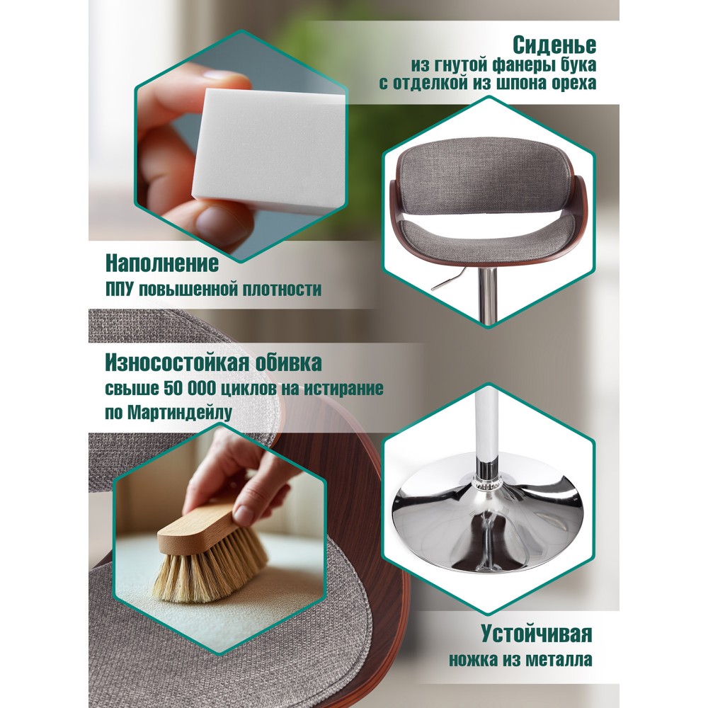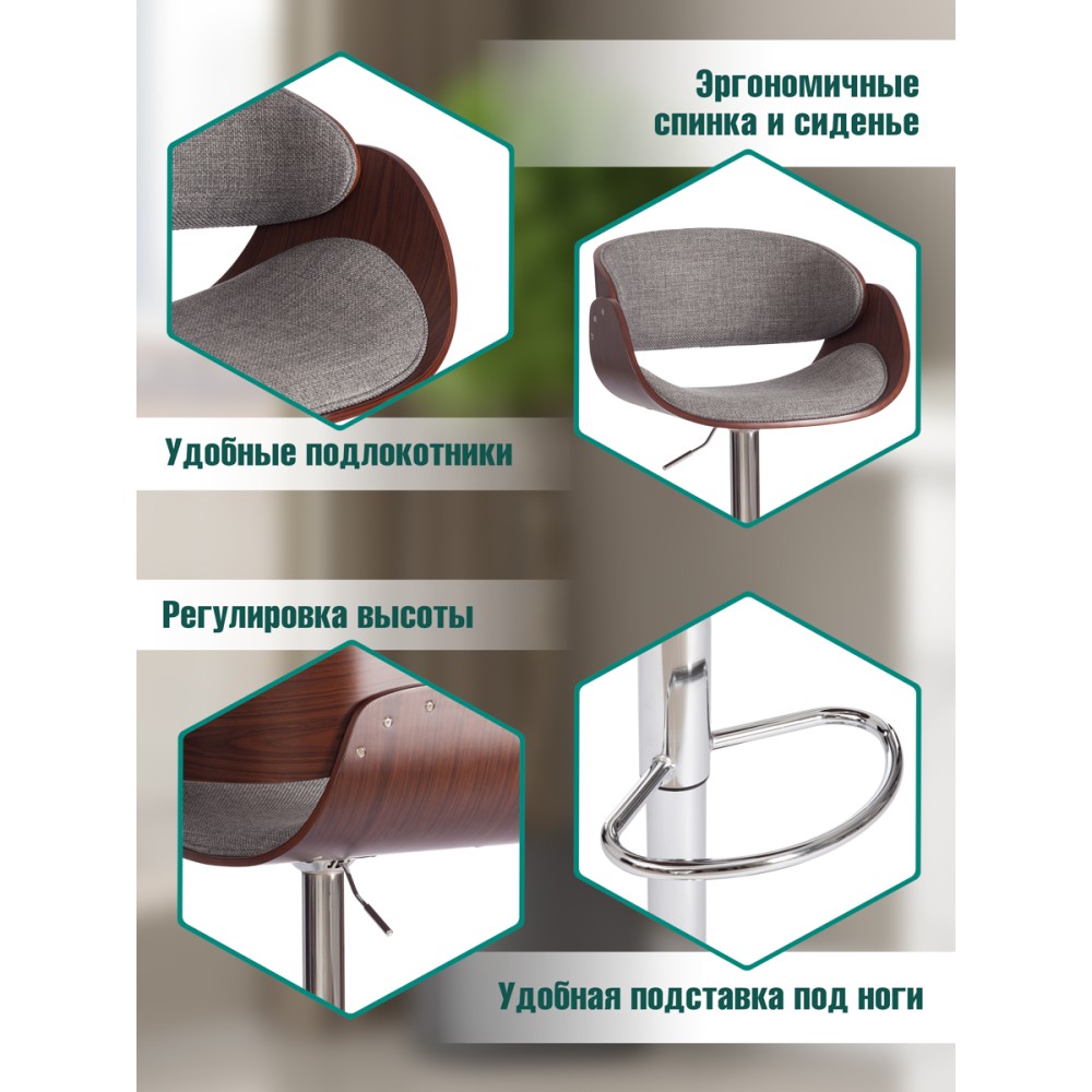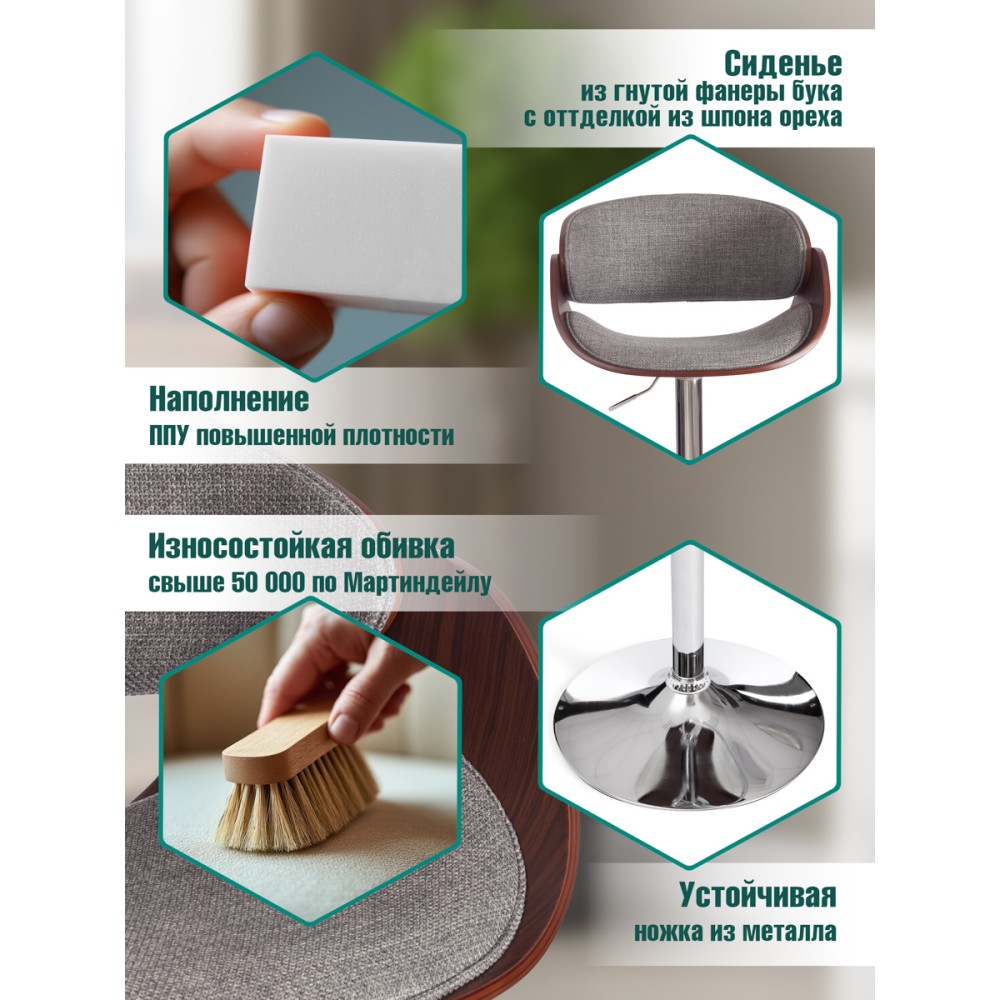 Барный стул LANDO — это сочетание стиля и комфорта, которое идеально вписывается в современные интерьеры. Его дизайн, основанный на гнутой фанере из бука с отделкой из орехового шпона, придаёт ему элегантный вид, который будет актуален как в кафе, так и в домашних условиях квартиры или загородного дома. Обивка стула, выполненная из качественной рогожки, не только радует взгляд, но также отличается высокой износостойкостью (до 50 000 циклов по шкале Мартиндейла), что гарантирует долгий срок службы и лёгкость в уходе.Эргономичная форма стула обеспечивает максимальный комфорт, что особенно важно для заведений, где гости могут проводить длительное время. Удобная подставка для ног и прочное хромированное металлическое основание — это важные детали, которые делают стул LANDO не только эстетичным, но и практичным выбором. Высокая максимальная нагрузка в 120 кг гарантирует долговечность и безопасность. Легкость в сочетании с различными интерьерными стилями делает этот стул универсальным решением, способным удовлетворить потребности даже самых взыскательных дизайнеров. Барный стул LANDO — это не просто предмет мебели, а стильный акцент в любом помещении, который объединяет в себе эстетику, комфорт и функциональность.