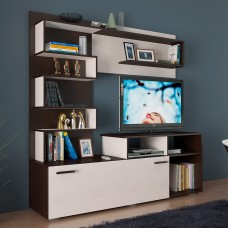 Стильная и очень вместительная комбинация из тумбы под ТВ и полки Наоми является частью одноимённой модульной серии. Модель выполнена из качественной ЛДСП вцвете дуб каньон, а фасад одного из ящиков отделан МДФ темного серого цвета. На столешнице тум..