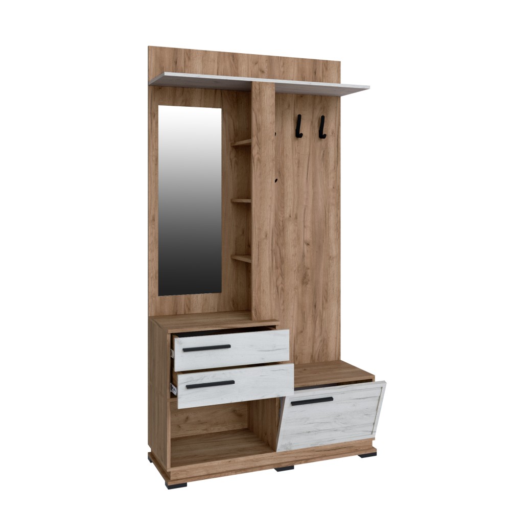Благодаря стильному дизайну и компактным размерам секция Модена МЦС-30 впишется в малогабаритную прихожую или квартиру-студию. Наличие полок, ящиков, надежные крючки и ниша под обувь позволят разместить верхнюю одежду, уличную и домашнюю обувь, сезонные аксессуары и головные уборы.