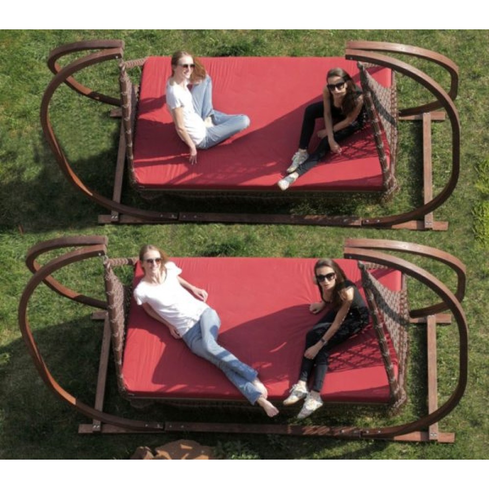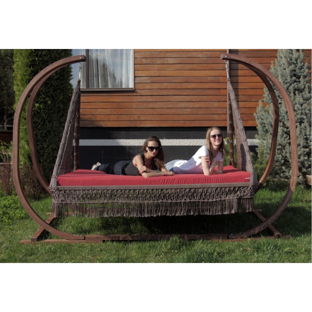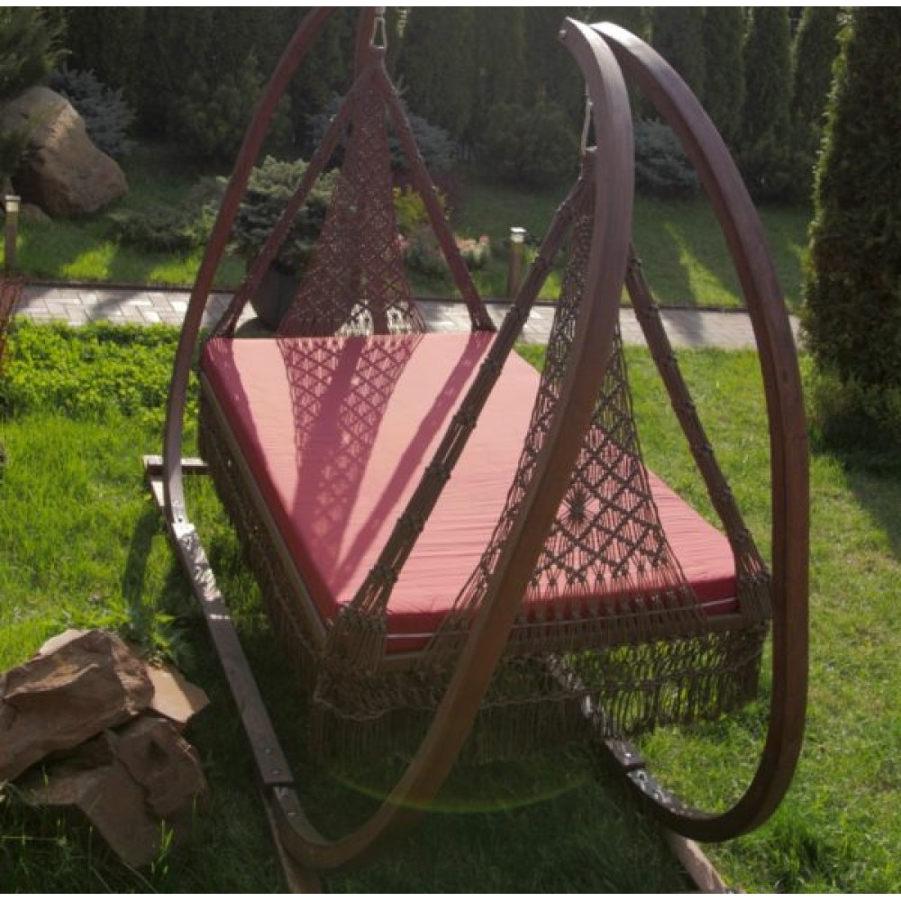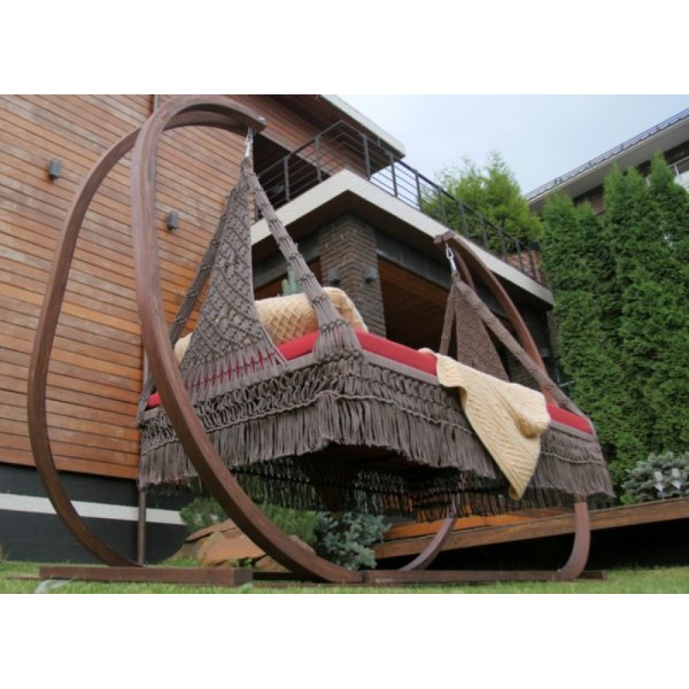 Подвесные качели МАРРАКЕШ допускает различные варианты крепления, могут фиксироваться к потолку посредством креплений или устанавливаться на надежный деревянный каркас. Качели кровать МАРРАКЕШ созданы для двоих, достаточно просторные и имеет солидный запас прочности – каркас выдерживает вес до 250 кг.