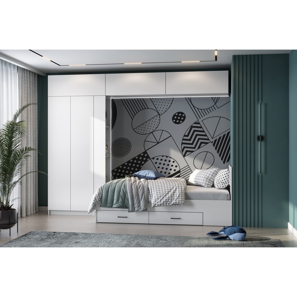 Модульная система "Бали" Кровать одинарная с ящиками (0,9х2,0) Белый шагрень - 1 шт.