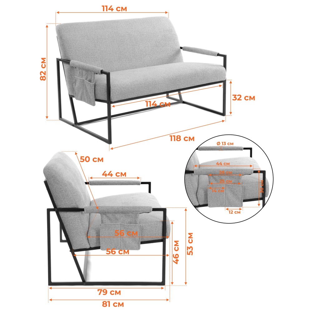 Диван Charli LUX — это истинное воплощение комфорта и современного стиля, идеально подходящее для различных интерьеров. Его прочный металлический каркас обеспечивает надёжность и долговечность, а обивка из износостойкой ткани не только элегантна, но и легко чистится, что делает это диван практичным выбором для повседневного использования. Лаконичный дизайн в стиле лофт и минимализм позволяют креслу Чарли Люкс гармонично вписаться в любой интерьер, будь то современная гостиная, уютное кафе, изысканный ресторан или стильный офис. Это диван не только функционально, но и служит ярким акцентом вашего интерьера, подчёркивая ваш вкус и внимание к деталям. Выбирая диван Charli LUX, вы выбираете стиль, комфорт и качество, которое будет радовать вас долгое время. Основные характеристики. Надежность и прочность: каркас выполнен из металлического профиля 20*20мм с толщиной стенки 1,5мм, что гарантирует долговечность. Каждый элемент тщательно изготовлен на автоматическом лазерном станке для точной сборки. Уникальный Комфорт: первое на рынке диван со смещённой перекладиной в глубину которое не мешает расположению ног, обеспечивая свободу движений. Идеальная отделка: высококачественное порошковое окрашивание исключает непрокрас и обладает матовой нежной шагренью, что придаёт изделию более премиальный вид. Наполнитель сиденья и спинки состоит из независимого пружинного блока + ППУ высокой плотности это даёт возможность комфортной посадки и быстро восстанавливается. Эргономика для всех: специально разработанный угол наклона спинки подходит для любой фигуры и обеспечивает максимальный комфорт. Уникальная защита: первое на рынке Диван со съёмной, тканевой мобильной защитной накладкой подлокотника с одной стороны с другой стороны подлокотник с удобным двойным карманом который гармонично дополняет кресло. Подлокотники являются универсальными, их можно менять местами. Дизайн: диван гармонично впишется в любое современное пространство. Простота сборки: диван комплектуется пошаговой инструкцией и требует всего лишь 6 винтов для сборки (в цвет каркаса). Компактная упаковка: упаковка разработана для защиты при транспортировке, Диван поставляется в 5-слойном картоне. Нагрузка 120 кг.