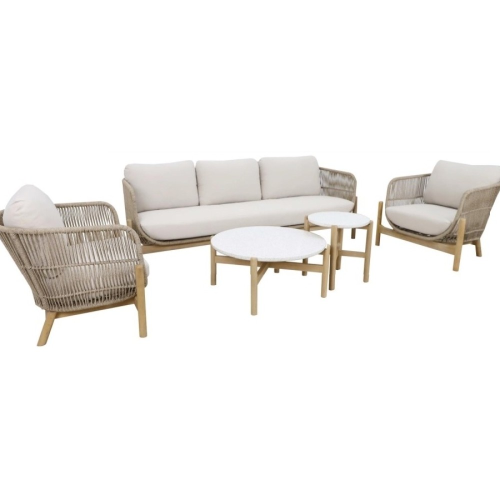 Дополнительно : столешница керамогранит TERAZZO цвет белый, Веревочное плетение Rope, цвет плетения – бежевый¶Анодированная фурнитура из нержавеющей стали