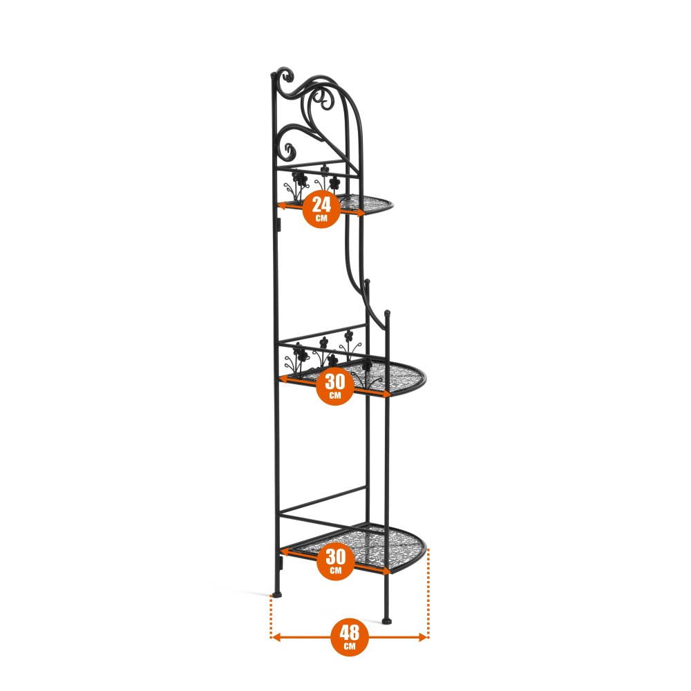 Этажерка угловая Secret de Maison Селин / Celine — это практичный и компактный металлический стеллаж для хранения, который идеально подходит для рационального использования пространства в доме, на кухне, в ванной, на балконе или даче. Благодаря угловой конструкции модель эффективно задействует свободные углы помещения, что делает её отличным решением для небольших квартир и ограниченных пространств. Напольная угловая этажерка металлическая выполнена в универсальном цвете и легко вписывается в современные интерьеры в стиле лофт, минимализм и сканди. Прочная конструкция обеспечивает устойчивость и надежность, а 3 вместительные полки позволяют удобно разместить книги, посуду, декор, растения или бытовые принадлежности. Компактные размеры 33×48×117 см делают этажерку удобной для размещения даже в небольших помещениях, при этом она остается вместительной и функциональной. Полки выдерживают нагрузку до 20 кг каждая, а максимальная нагрузка на всю конструкцию составляет до 60 кг, что гарантирует надежность при ежедневном использовании. Расстояние между полками 38 см позволяет размещать предметы разной высоты, а продуманная форма полок с глубиной боковой стороны от 24 до 30 см обеспечивает удобное хранение и доступ к вещам. Главное преимущество модели — складная этажерка без сборки, которая полностью готова к использованию сразу после покупки. Это идеальное решение для тех, кто ищет угловой складной стеллаж металлический, который можно легко перемещать и использовать в разных зонах дома. Этажерка Secret de Maison Селин / Celin подходит как: этажерка для ванной, угловая этажерка для кухни, угловой стеллаж для хранения, этажерка для ванной, стеллаж для книг, этажерка для растений, мебель для балкона и дачи, компактная угловая мебель. Выбирая эту модель, вы получаете угловую металлическую этажерку, складной стеллаж и удобную систему хранения, которая сочетает компактность, функциональность и современный дизайн.