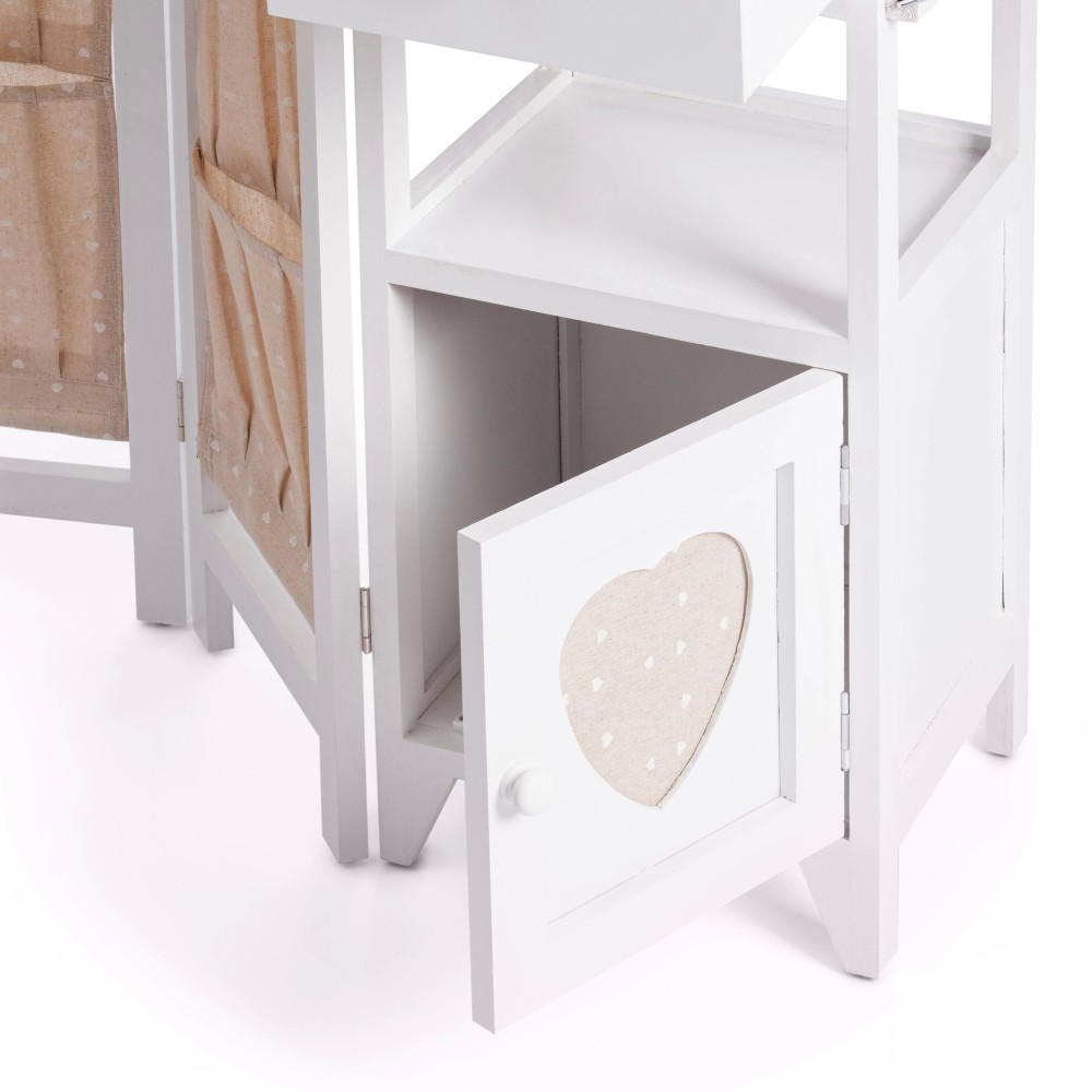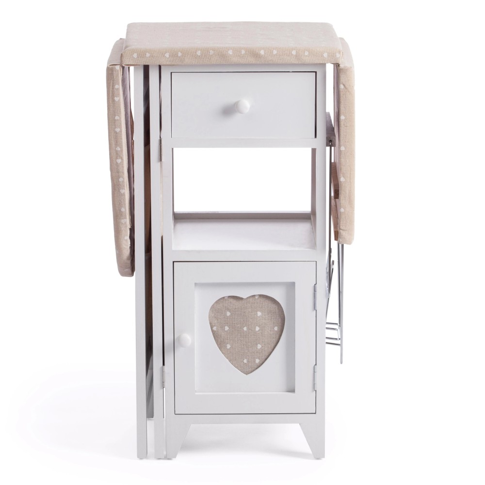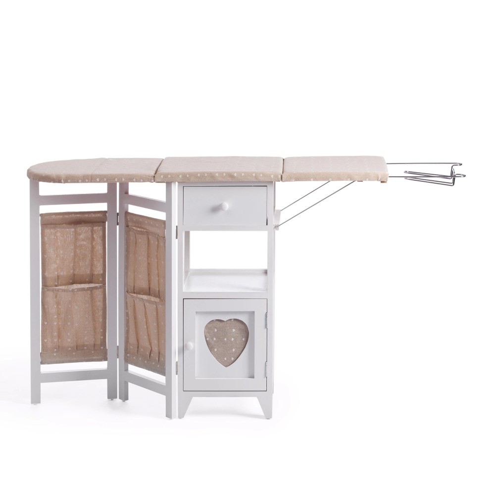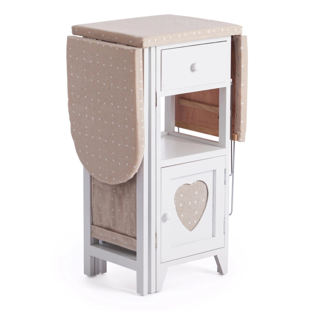 .Уют, нежность и красоту объединяет в себе гладильный комод Secret De Maison AMANT из коллекции SAINT-TROPEZ. Комод станет идеальным выбором для любой хозяйки. Его можно поставить в гостиной, спальне, коридоре, ванной. В сложенном виде он не занимает много места. Выдвижной ящик, отделение с дверцей и открытая полка станут отличной системой для хранения различных предметов. Благодаря наличию специального складного механизма, комод можно быстро и легко трансформировать в гладильную доску. Удобный размер доски, подставка для утюга и чехол из ткани обеспечивают оптимальные условия для глажки. Тканевые кармашки с нежным принтом добавляют естественности, мягкости и простоты изделию. Модель выполнена из массива павловнии. Это легкий и одновременно прочный материал, с хорошими водоотталкивающими свойствами, благодаря чему комод долговечен, надежен и не требует специального ухода. Изделие отлично сочетается с мебелью из коллекции SAINT-TROPEZ, поставляется в собранном виде.
