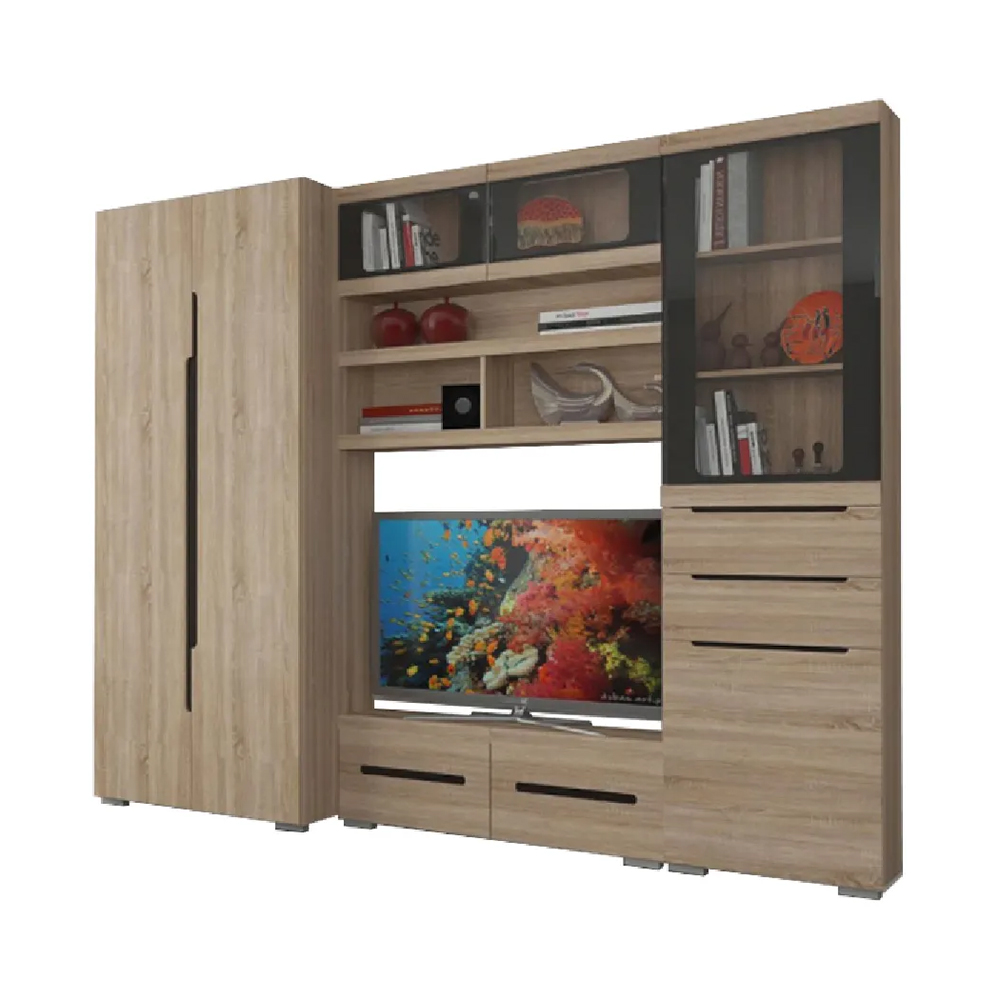 Гостиная Эколь - современная модульная система для стильного и удобного интерьера. Шкафы предлагают максимальное наполнение и удобство сборки. Боковые части изделий делают интерьер эстетичным, а шариковые направляющие ящиков обеспечивают комфорт использования.