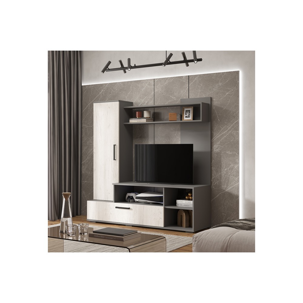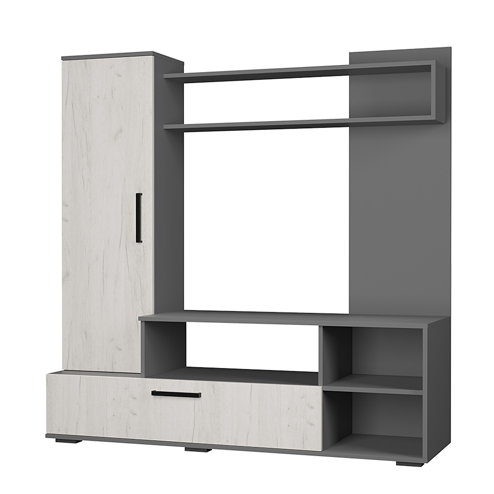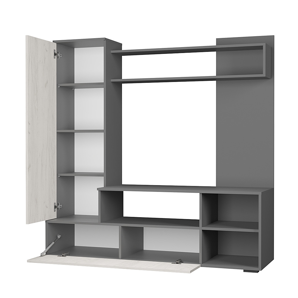 Гостиная "Евро-2" - гармоничное сочетание яркого дизайна и минималистичных форм. Просторная ниша под ТВ. Закрытая боковая секция для хранения крупных и мелких вещей. Легкое открывание нижней секции благодаря механизму "газлифт". Стильная полка над нишей под ТВ - место для декора. Удобные и вместительные полки под телефизором для хранения техники, книг и предметов интерьера.