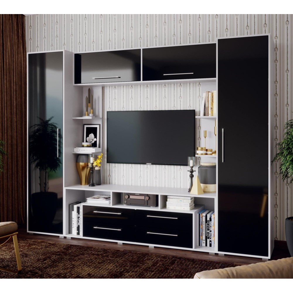 Гостиная Гармония - современная модульная система для стильного и удобного интерьера. Шкафы предлагают максимальное наполнение и удобство сборки. Боковые части изделий делают интерьер эстетичным, а роликовые направляющие ящиков обеспечивают комфорт использования.