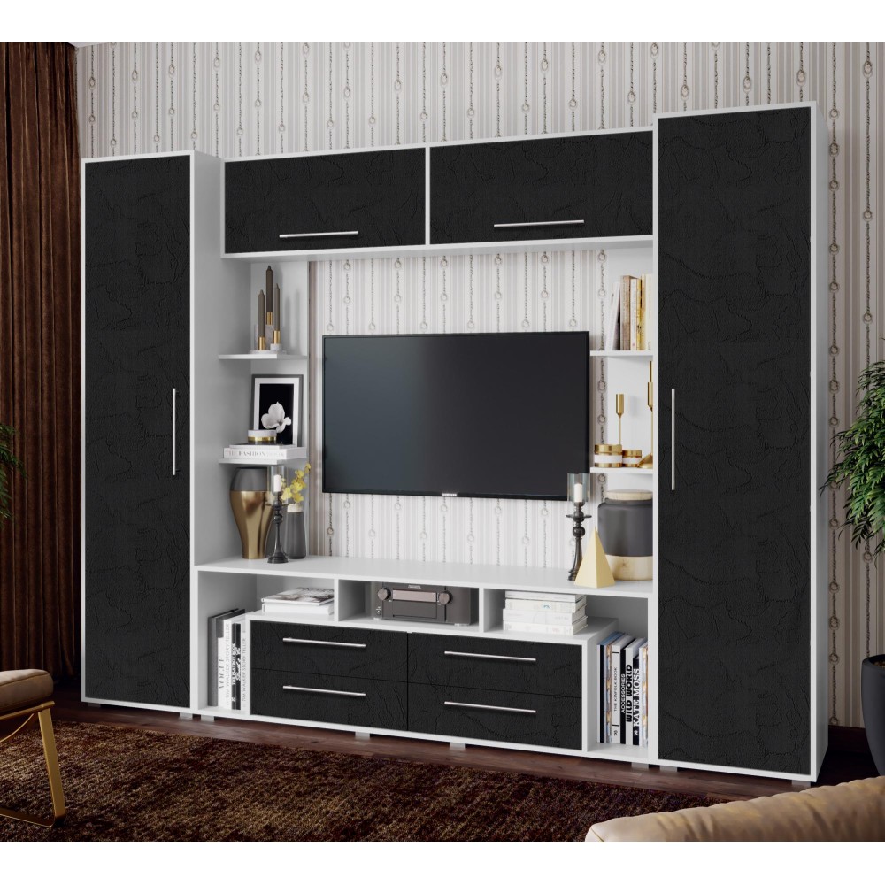 Гостиная Гармония - современная модульная система для стильного и удобного интерьера. Шкафы предлагают максимальное наполнение и удобство сборки. Боковые части изделий делают интерьер эстетичным, а роликовые направляющие ящиков обеспечивают комфорт использования.