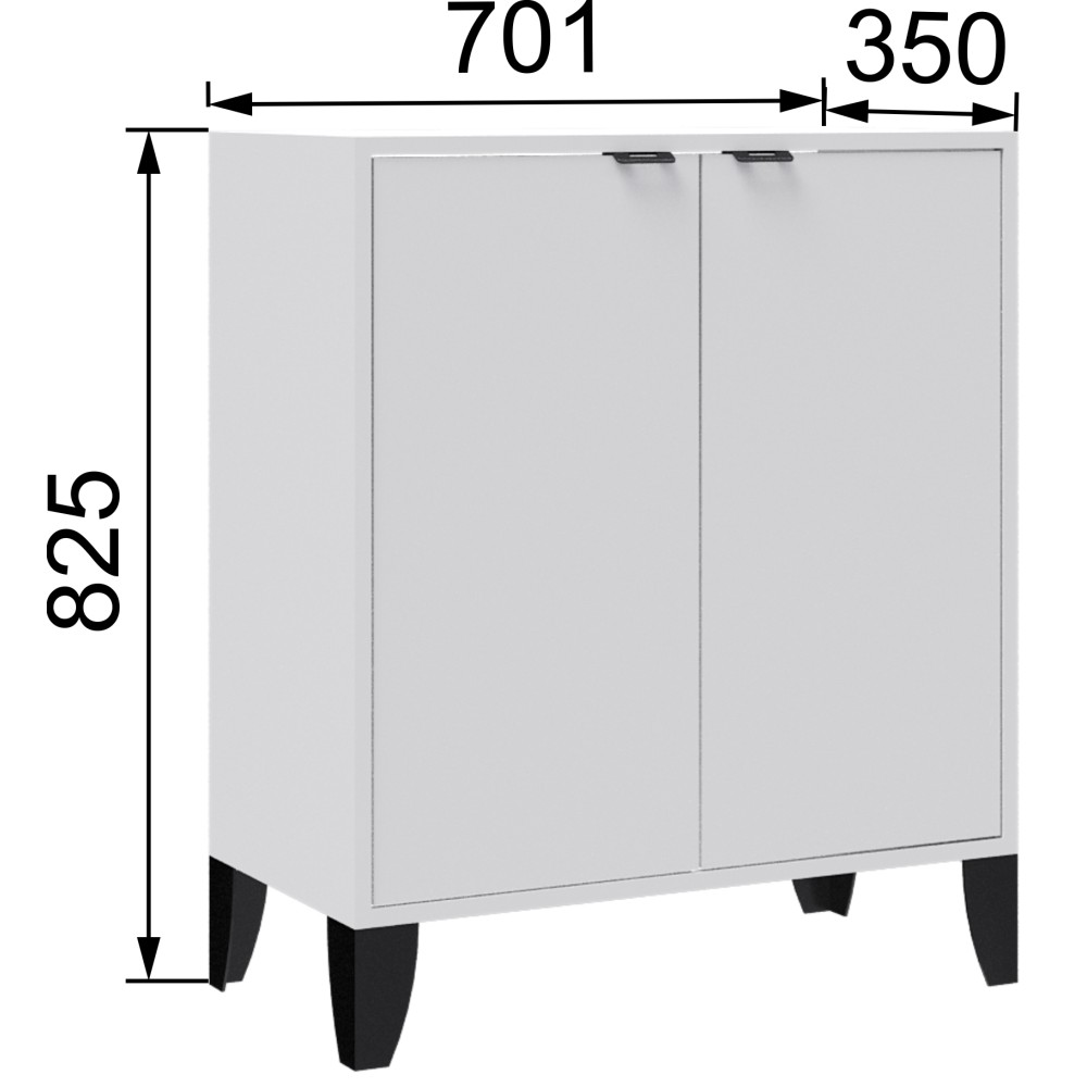 Модель оснащена распашными дверцами, за которыми скрывается продуманная система хранения с полками. Такое внутреннее наполнение позволяет удобно разместить одежду, текстиль, посуду, документы или другие необходимые вещи, сохраняя их защищёнными от пыли и посторонних взглядов.