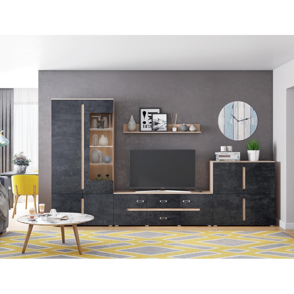 Гостиная Ким - современная модульная система для стильного и удобного интерьера. Шкафы предлагают максимальное наполнение и удобство сборки. Боковые части изделий делают интерьер эстетичным, а роликовые направляющие ящиков обеспечивают комфорт использования.