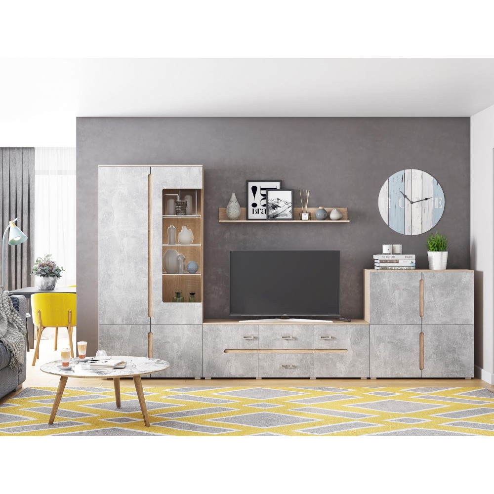 Гостиная Ким - современная модульная система для стильного и удобного интерьера. Шкафы предлагают максимальное наполнение и удобство сборки. Боковые части изделий делают интерьер эстетичным, а роликовые направляющие ящиков обеспечивают комфорт использования.