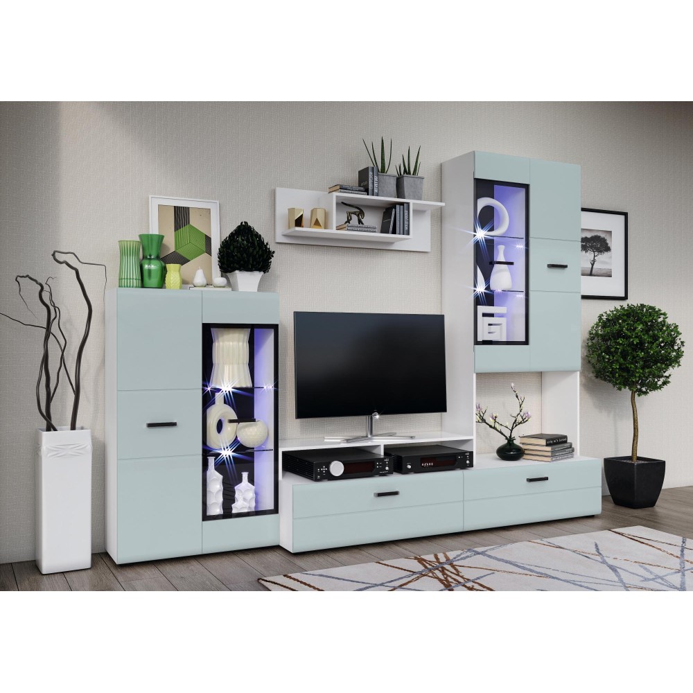 Изысканная, с приятным блеском гостиная, несомненно украсит собой любую квартиру или дом. В гостиной есть все необходимые элементы для красивого оформления комнаты. Фасады с фрезеровкой и стеклянные витрины создают современный и стильный образ вашему дому.