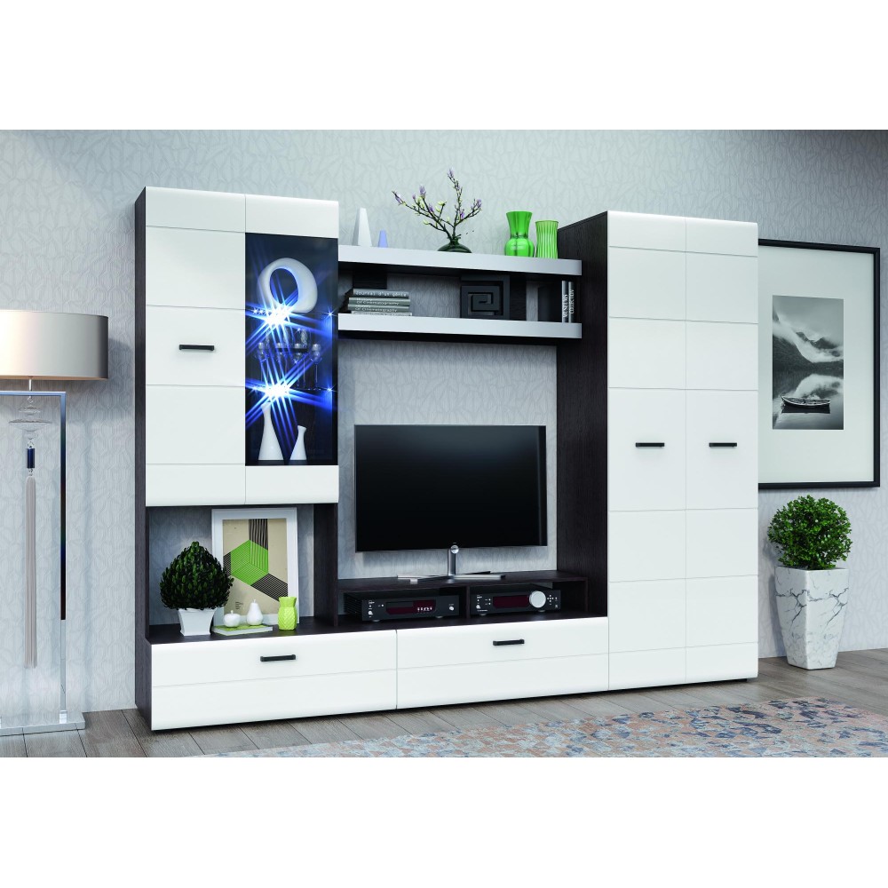 Гостиная Нэнси - современная модульная система для стильного и удобного интерьера. Шкафы предлагают максимальное наполнение и удобство сборки, а шариковые направляющие ящиков обеспечивают комфорт использования.