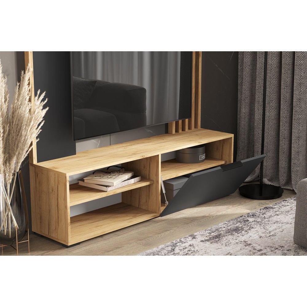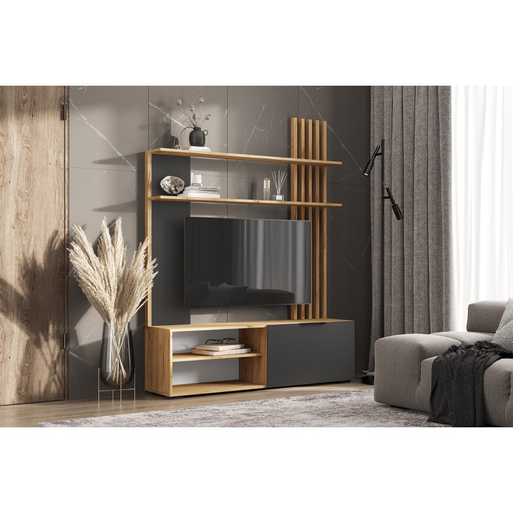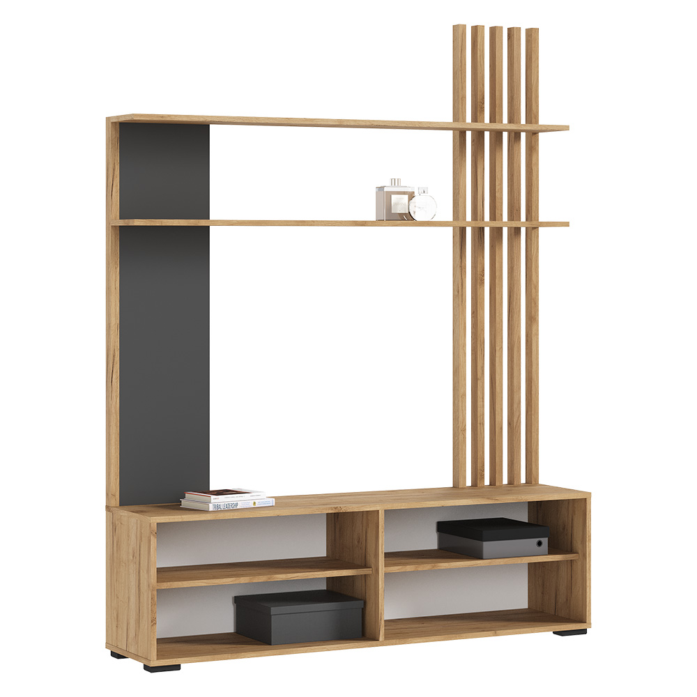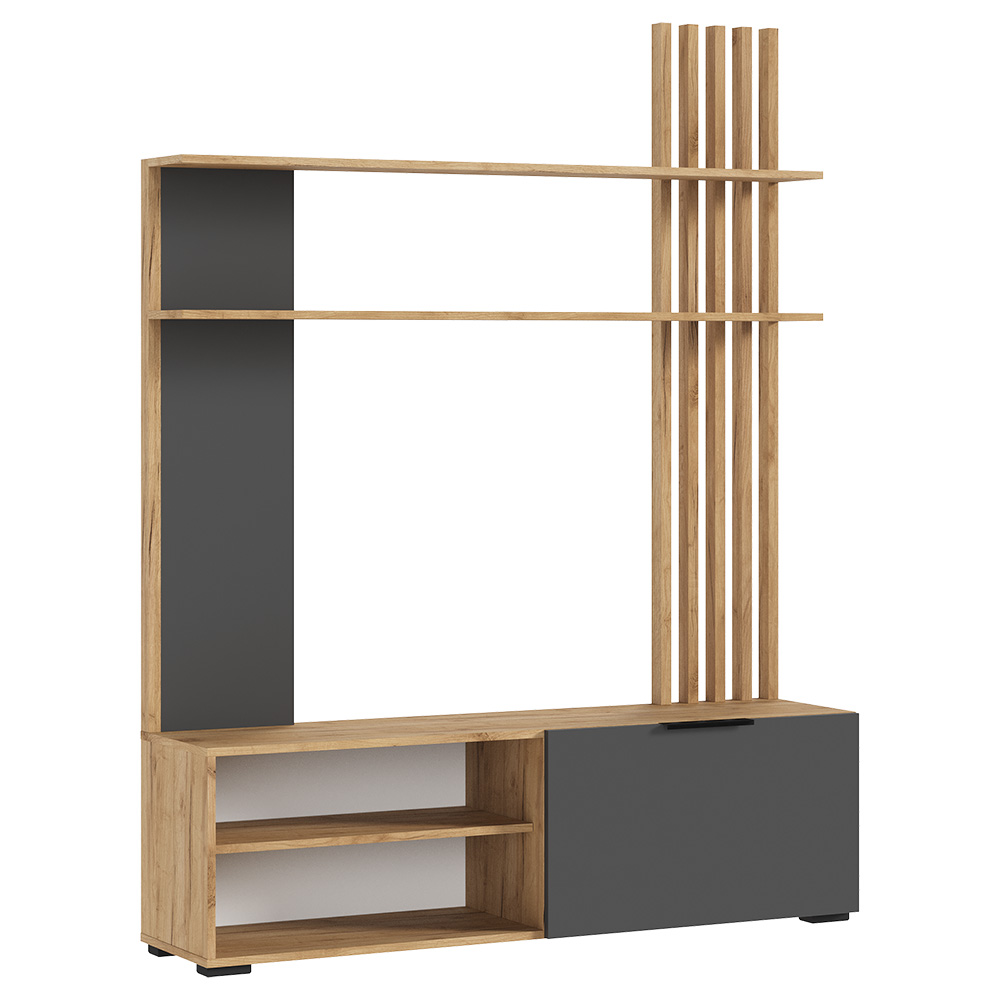 Гостиная Роджина — это изысканный элемент мебели, который станет центром вашего интерьера. Секция предназначена для установки телевизора и оснащена полками для предметов интерьера.
