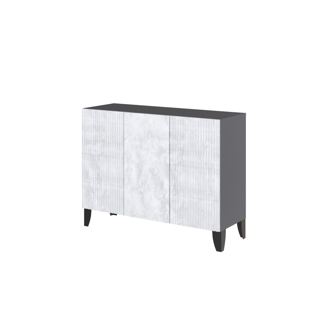 Комод из модульной серии Сириния дополнит современный интерьер комнаты. Вместительные полки за распашными дверьми позволят организовать место хранения белья и одежды, аксессуаров и других нужных предметов.