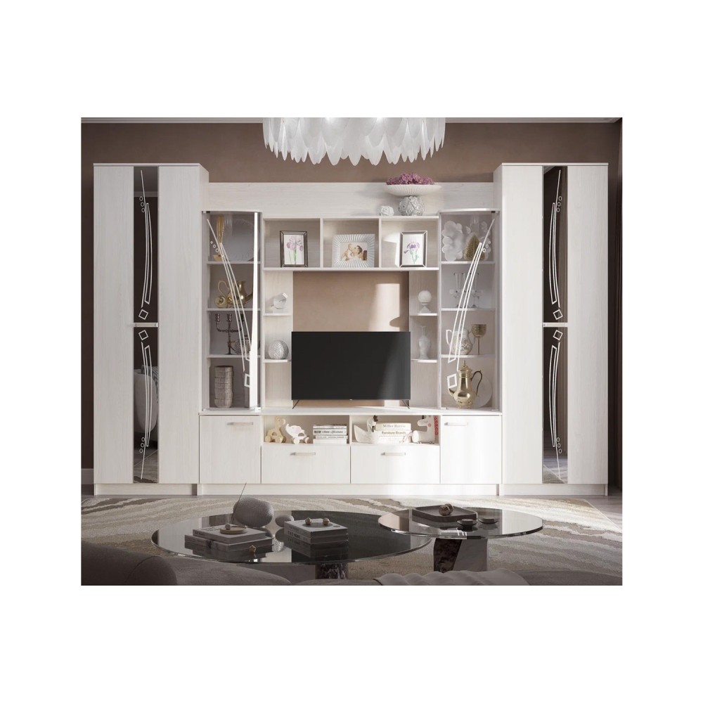 Гостиная «Венеция» – идеальный вариант для размещения большого количества вещей, включая одежду, ведь данная модель имеет зоны для ее хранения. Открытые полки вокруг ниши для телевизора позволят не только хранить предметы повседневного обихода, но и украсить интерьер. Стильные стеклостворки придают особую элегантность композиции изделия.