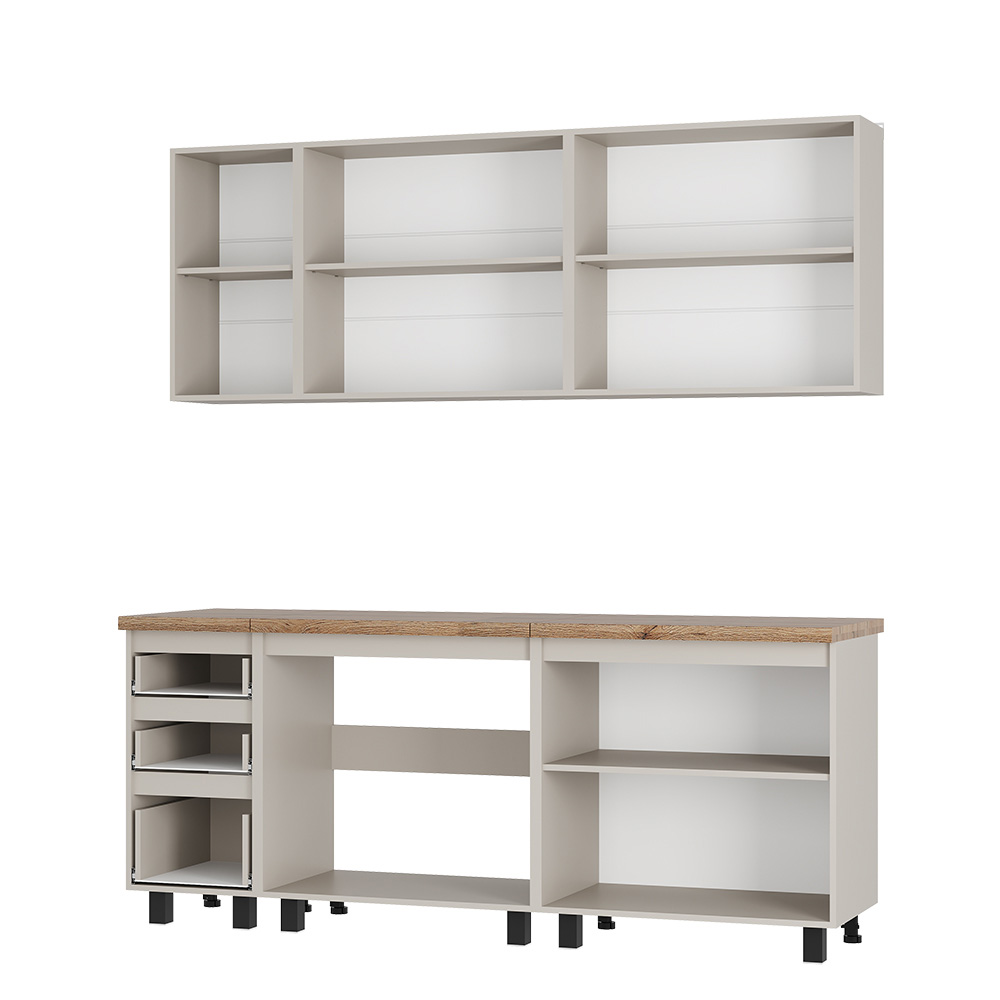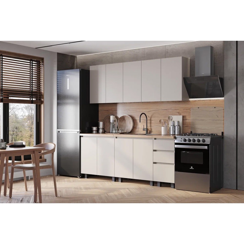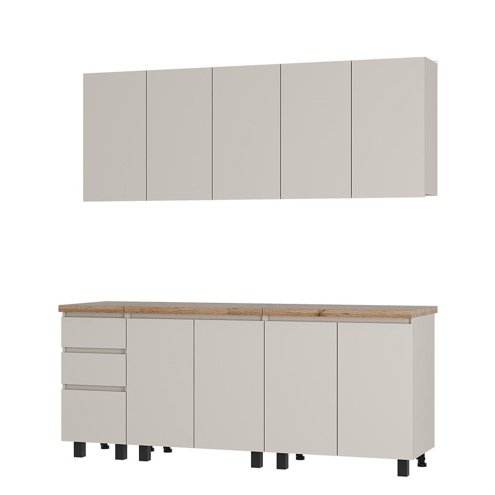 Кухня Честер - это минималистичная модель для современной кухни. Фасады и корпус выполнены в трендовом оттенке "кашемир", который идеально подойдет для интерьера в натуральных тонах. Столешница в теплом цвете "дуб кера", повторяющая текстуру дерева, добавляет кухне уюта. Благодаря отсутствию лицевой фурнитуры ежедневное использование станет проще, а уборка - приятнее. Особенную выразительность дизайну этой модели придают стильные черные квадратные опоры. Четкие линии модулей создают ощущение порядка и гармонии.