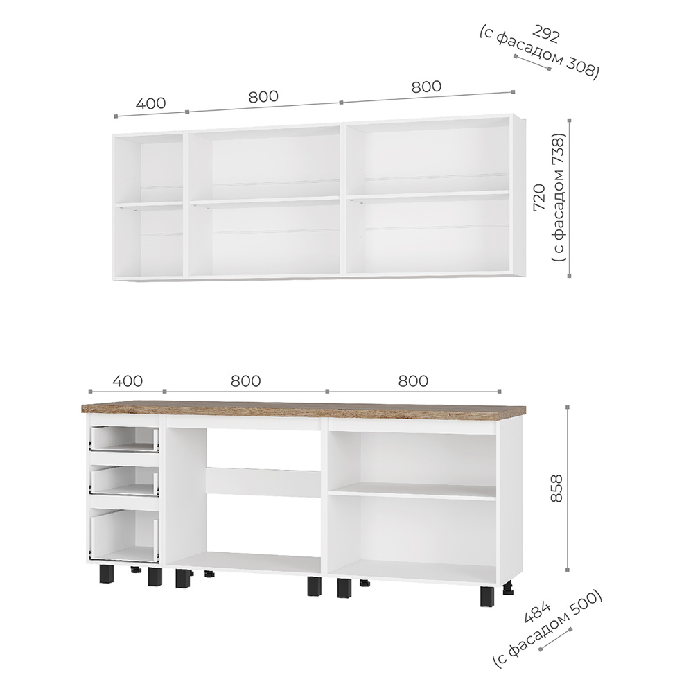 — В комплекте раздельная столешница 38 мм в декоре дуб кера длиной 800 мм*800 мм*400 мм.