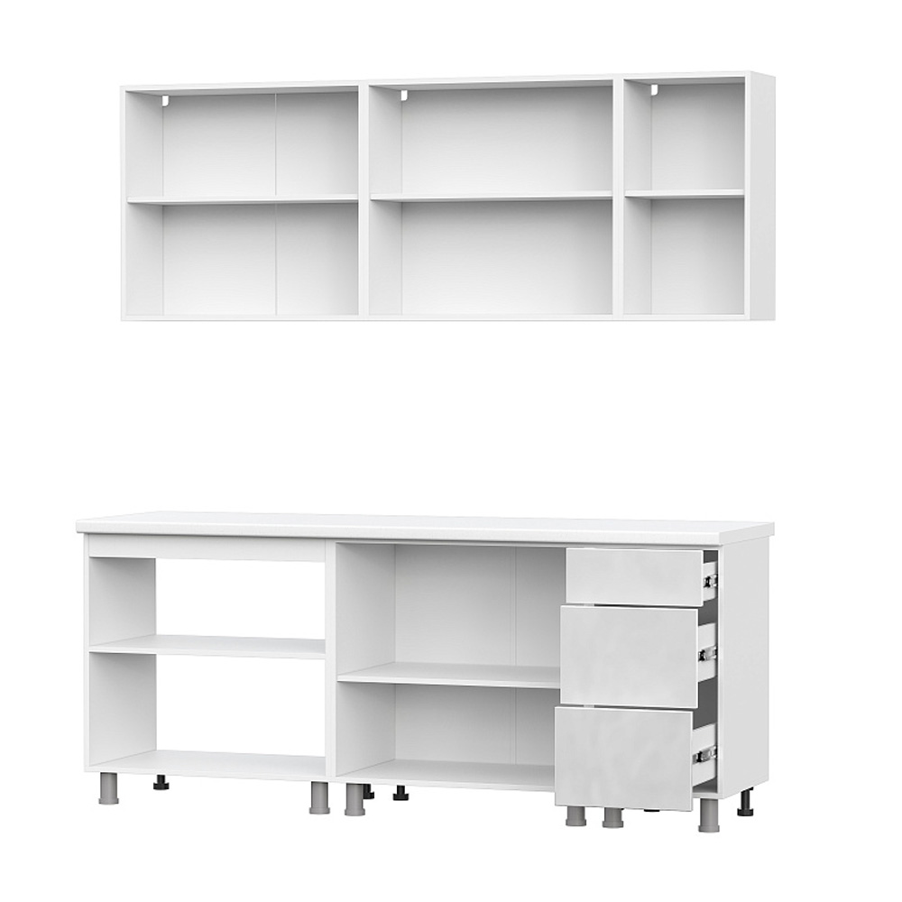 Готовая кухня Модерн - компактное и функциональное решение для вашего дома. Все фасады универсальные. Кухня комплектуется опорами, регулируемыми по высоте. Кухонный гарнитур «Модерн New» не комплектуется ручками, но имеет разметку под ручки с межцентровым расстоянием 128 мм. Ручки, толкатели PUSH LATCH, столешница, стеновая панель, а также дополнительное оборудование (мойка, смеситель, бытовая техника) приобретаются отдельно. Данная кухня доступна также в качестве модульной системы, что позволяет создать любую конфигурацию под размеры вашего помещения.