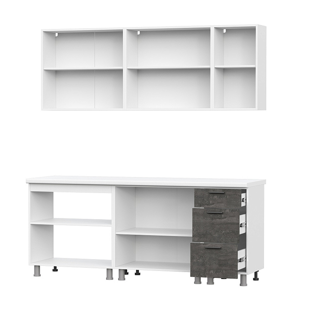 Готовая кухня Модус - компактное и функциональное решение для вашего дома. Все фасады универсальные. Кухня комплектуется опорами, регулируемыми по высоте. Столешница, стеновая панель, а также дополнительное оборудование (мойка, смеситель, бытовая техника) приобретаются отдельно. Ручки в комплекте. Данная кухня доступна также в качестве модульной системы, что позволяет создать любую конфигурацию под размеры вашего помещения.