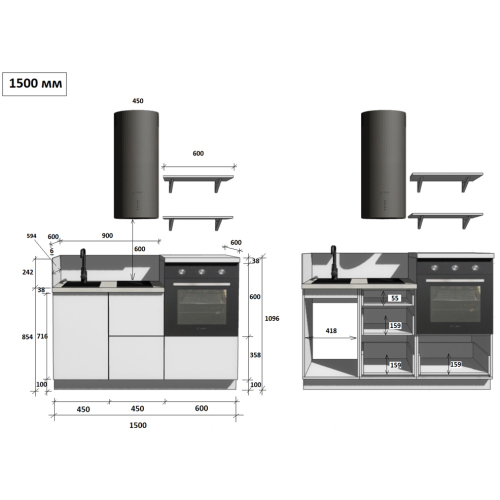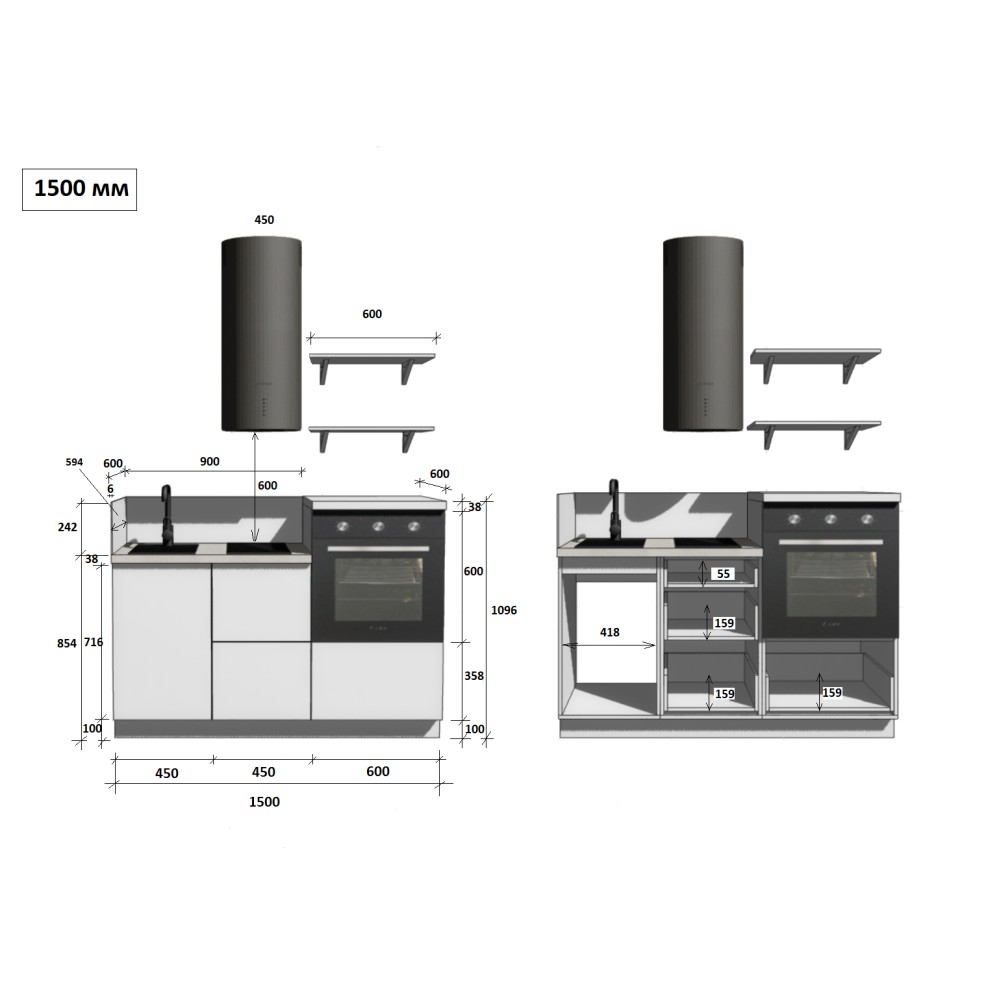 — Цельная столешница: без стыков и зазоров — больше гигиеничности и удобства в уборке.