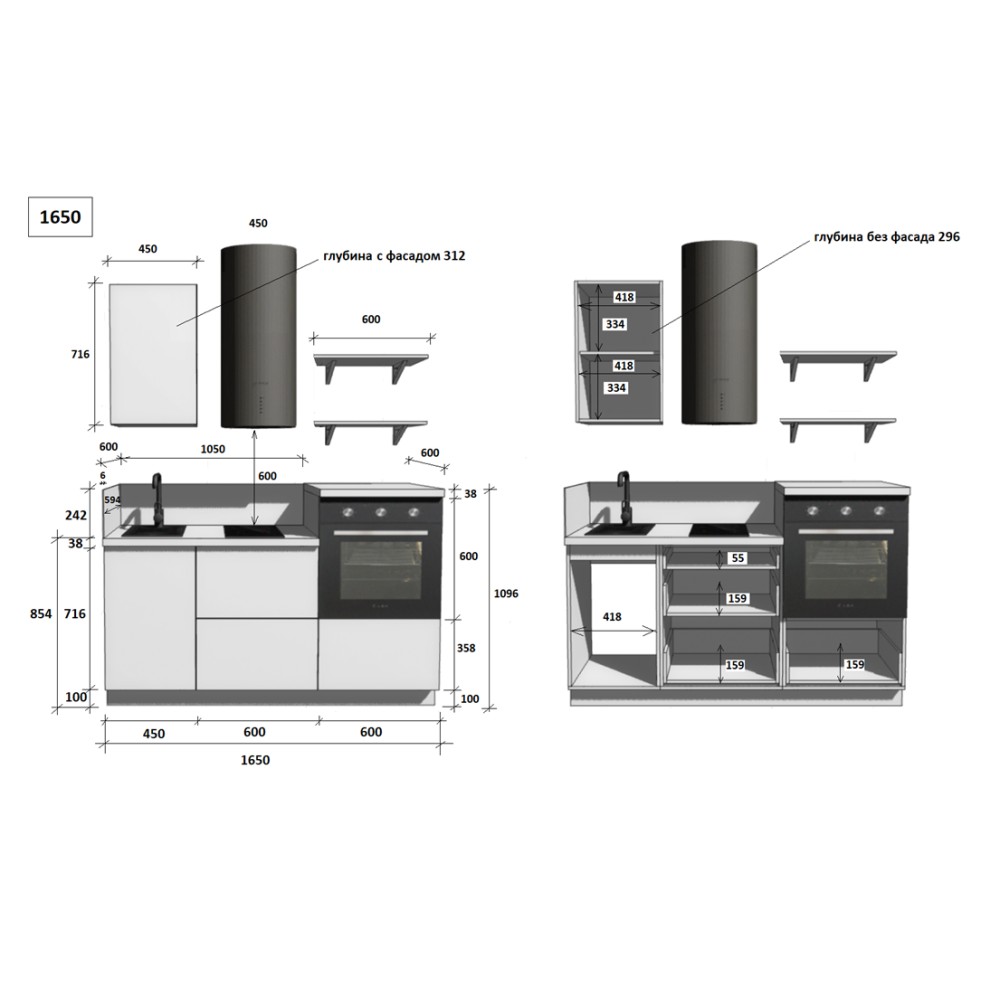 — Цельная столешница: без стыков и зазоров — больше гигиеничности и удобства в уборке.