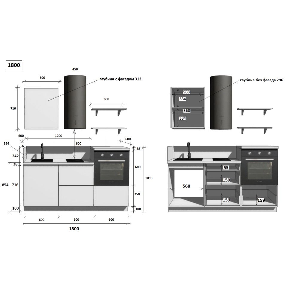 — Цельная столешница: без стыков и зазоров — больше гигиеничности и удобства в уборке.