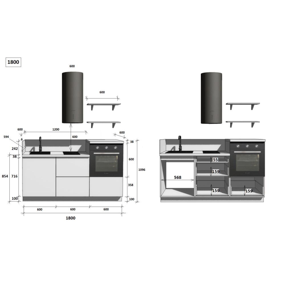 — Цельная столешница: без стыков и зазоров — больше гигиеничности и удобства в уборке.