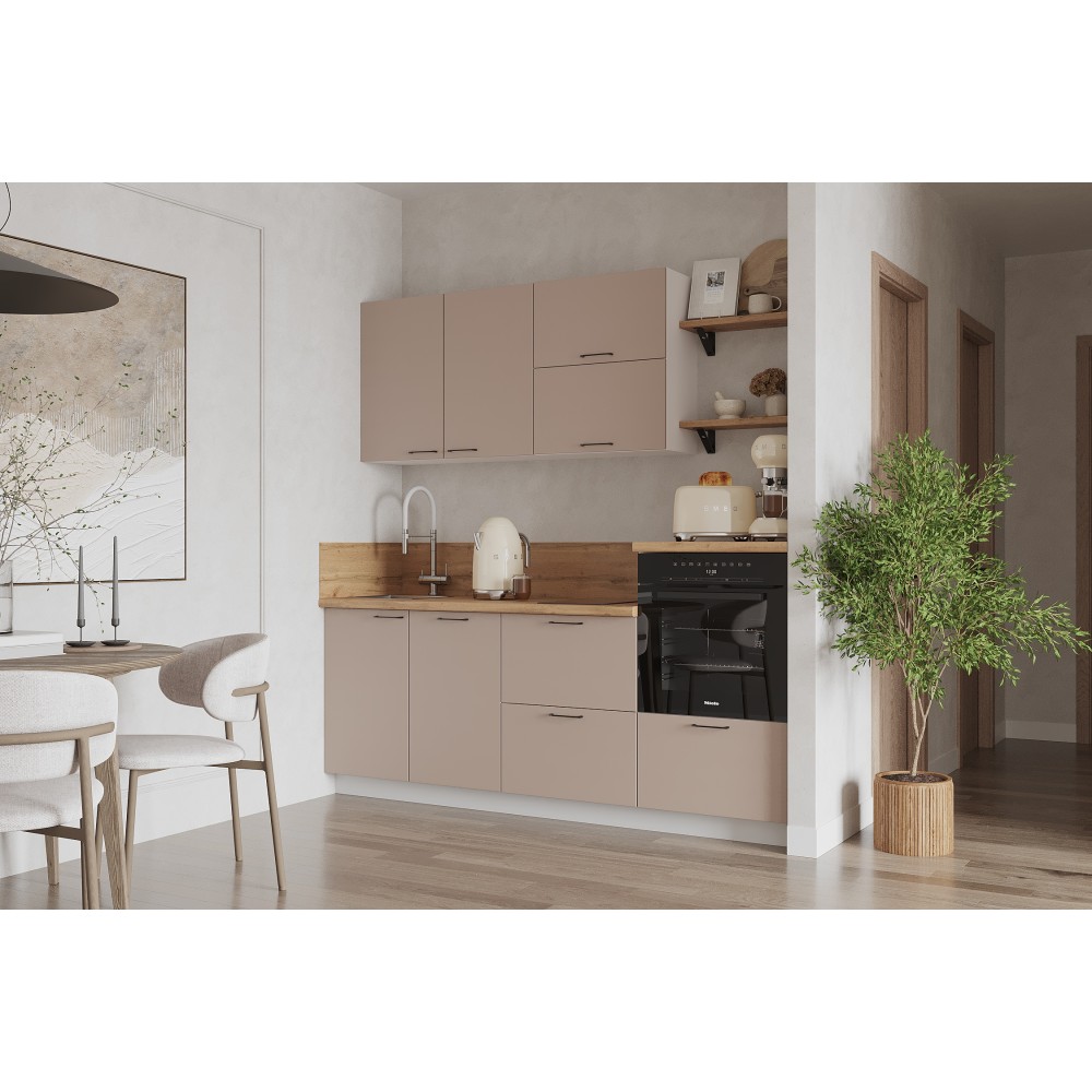 Кухня «Лизет» сочетает петербургскую элегантность и современную функциональность. Вдохновлённая эпохой Петра I и архитектурой Петербурга, она объединяет благородные цвета, тёплую древесную текстуру и лаконичные линии — для создания уютной и гармоничной кухни.