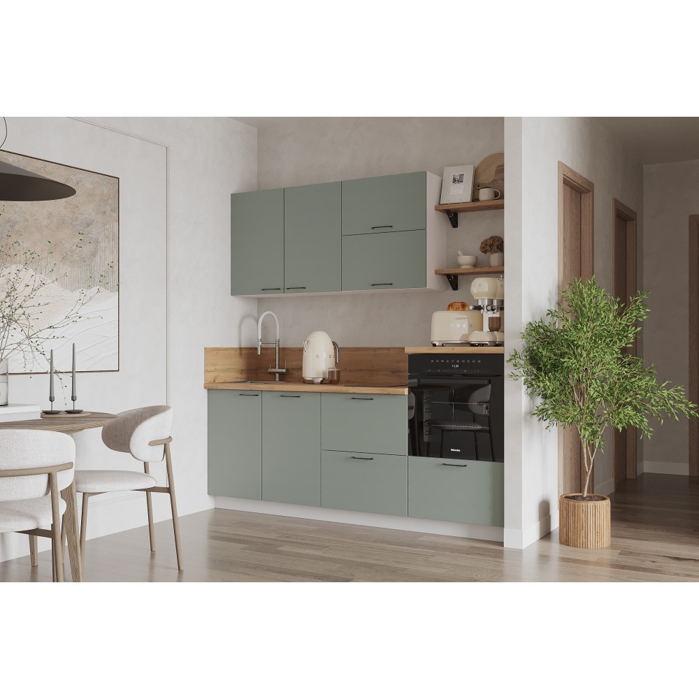 Кухня «Лизет» сочетает петербургскую элегантность и современную функциональность. Вдохновлённая эпохой Петра I и архитектурой Петербурга, она объединяет благородные цвета, тёплую древесную текстуру и лаконичные линии — для создания уютной и гармоничной кухни.