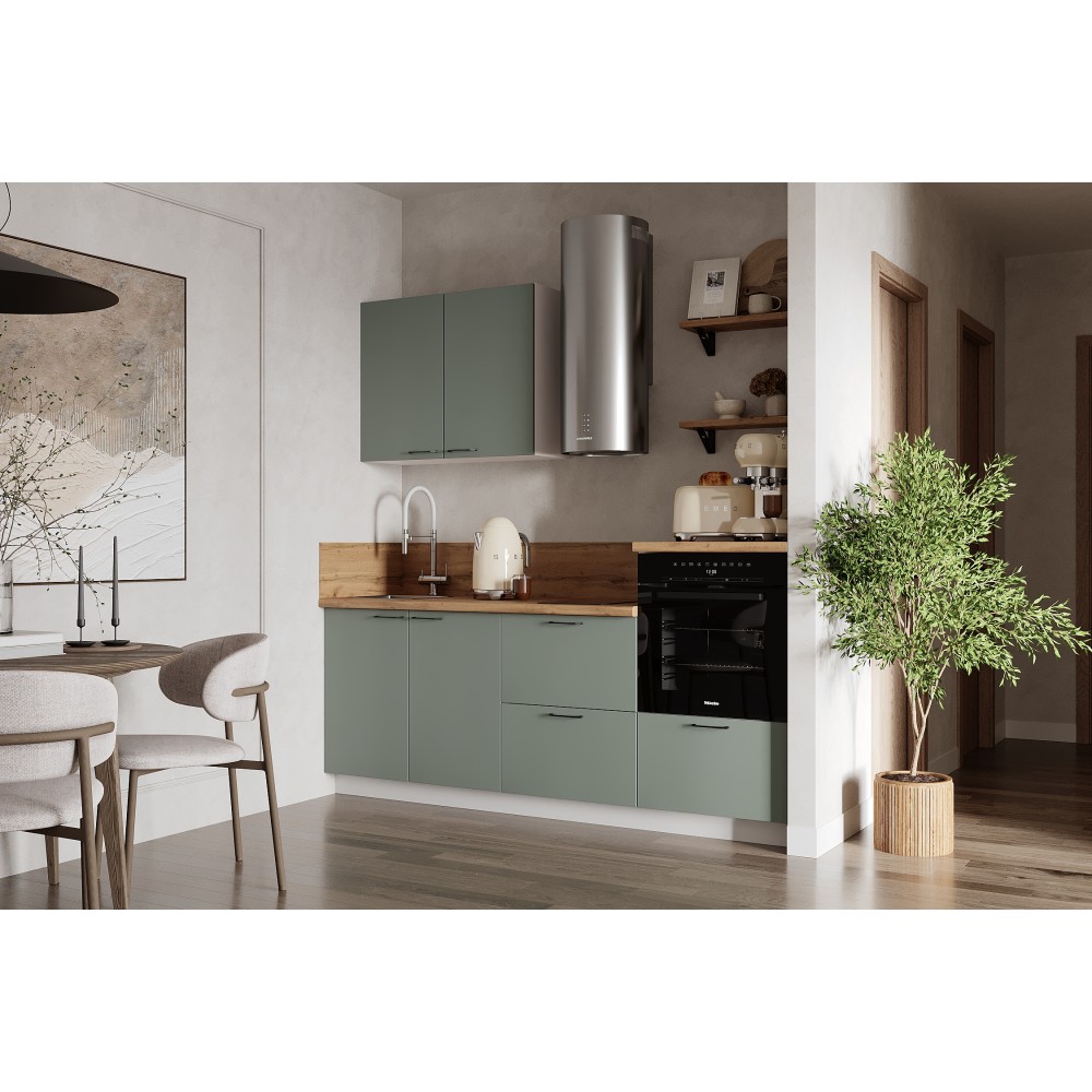Кухня «Лизет» сочетает петербургскую элегантность и современную функциональность. Вдохновлённая эпохой Петра I и архитектурой Петербурга, она объединяет благородные цвета, тёплую древесную текстуру и лаконичные линии — для создания уютной и гармоничной кухни.