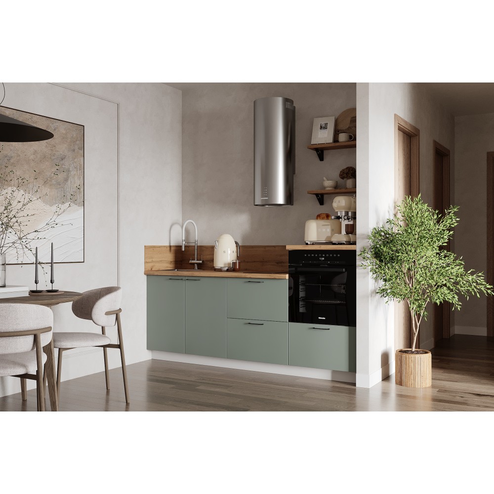 Кухня «Лизет» сочетает петербургскую элегантность и современную функциональность. Вдохновлённая эпохой Петра I и архитектурой Петербурга, она объединяет благородные цвета, тёплую древесную текстуру и лаконичные линии — для создания уютной и гармоничной кухни.