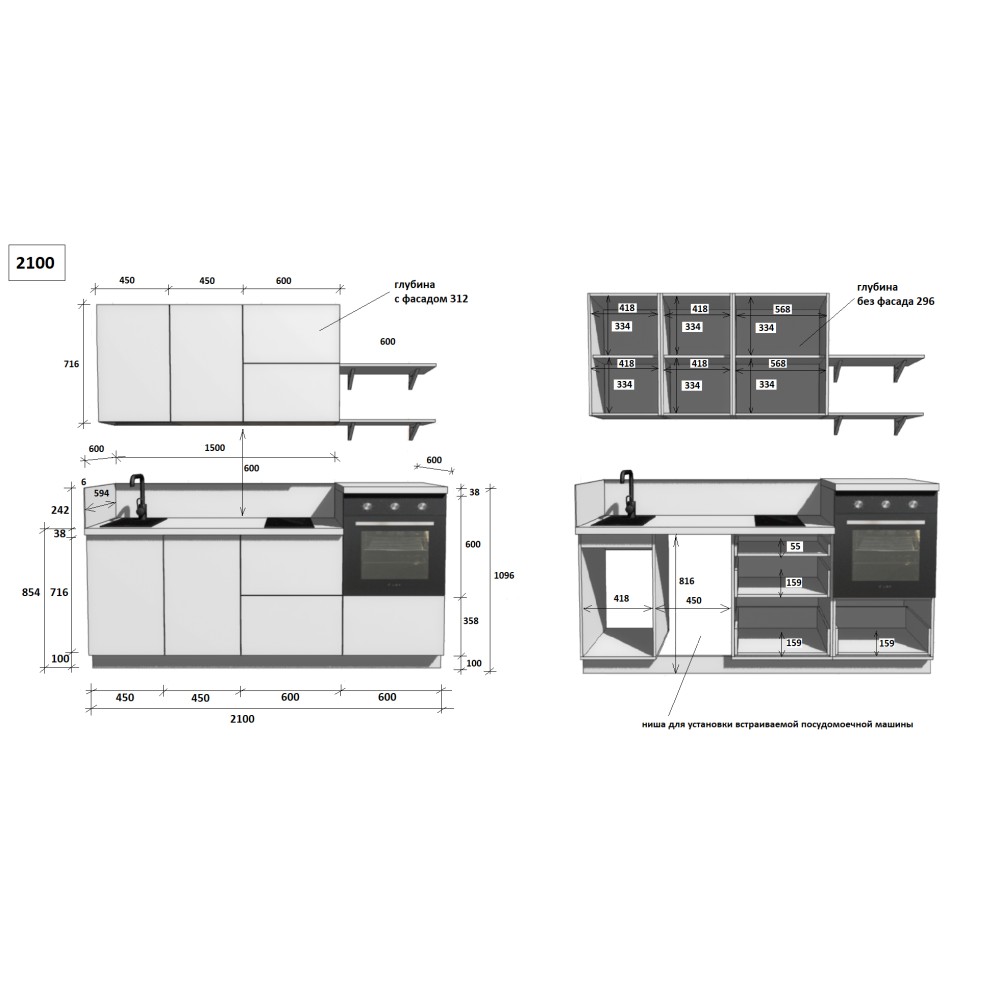 — Цельная столешница: без стыков и зазоров — больше гигиеничности и удобства в уборке.