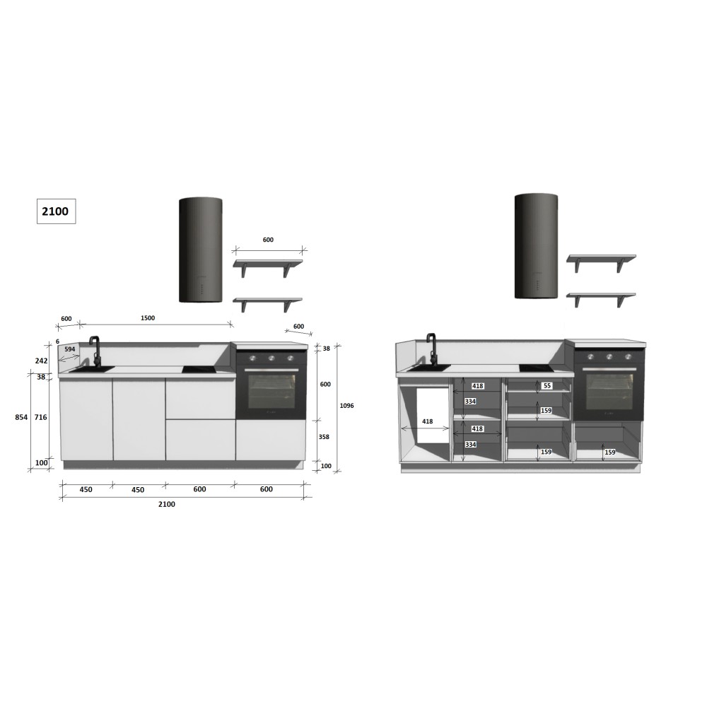 — Цельная столешница: без стыков и зазоров — больше гигиеничности и удобства в уборке.