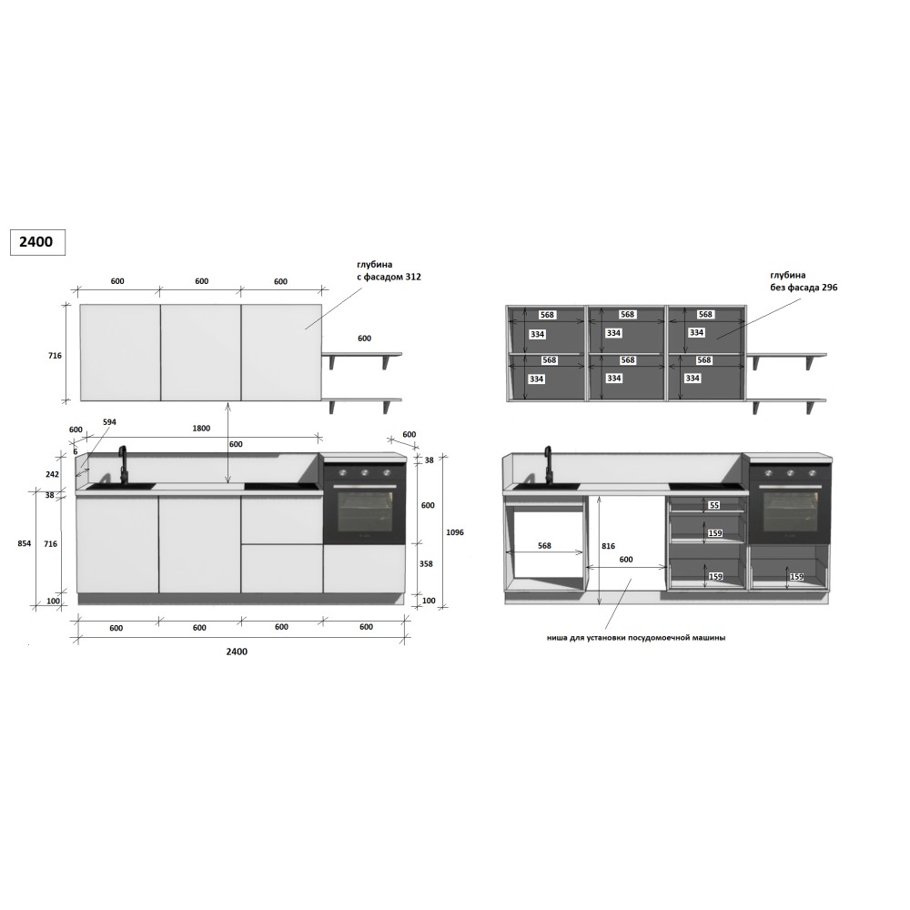 — Цельная столешница: без стыков и зазоров — больше гигиеничности и удобства в уборке.