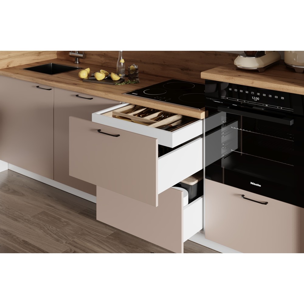 Кухня «Лизет» сочетает петербургскую элегантность и современную функциональность. Вдохновлённая эпохой Петра I и архитектурой Петербурга, она объединяет благородные цвета, тёплую древесную текстуру и лаконичные линии — для создания уютной и гармоничной кухни.