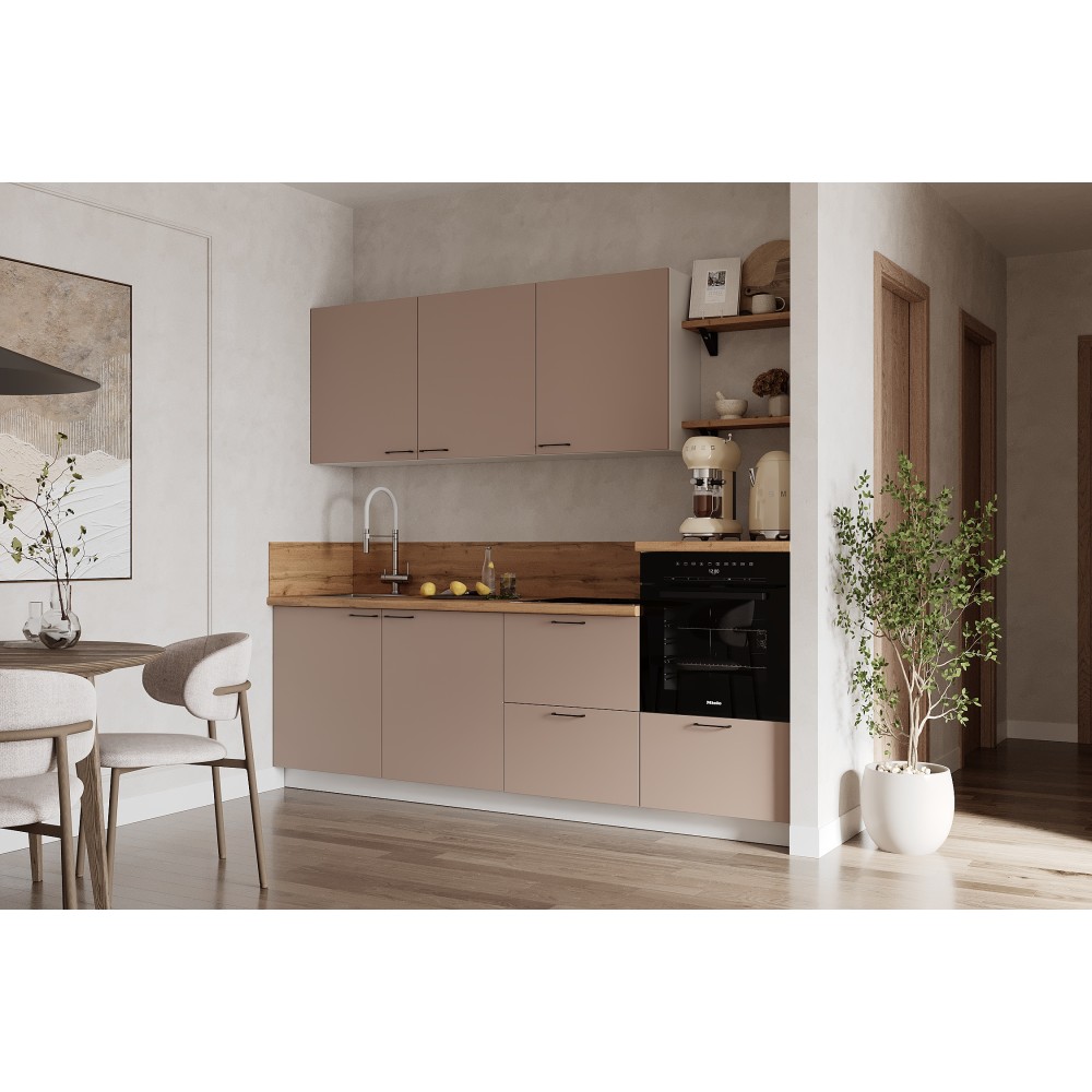 Кухня «Лизет» сочетает петербургскую элегантность и современную функциональность. Вдохновлённая эпохой Петра I и архитектурой Петербурга, она объединяет благородные цвета, тёплую древесную текстуру и лаконичные линии — для создания уютной и гармоничной кухни.