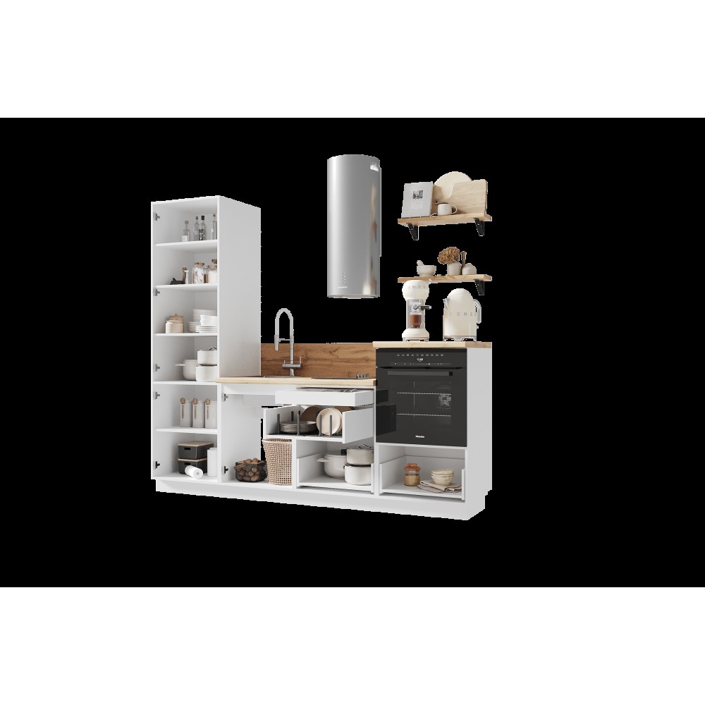 — Эстетика и зонирование: высокий модуль для духового шкафа делает интерьер аккуратным и современным.