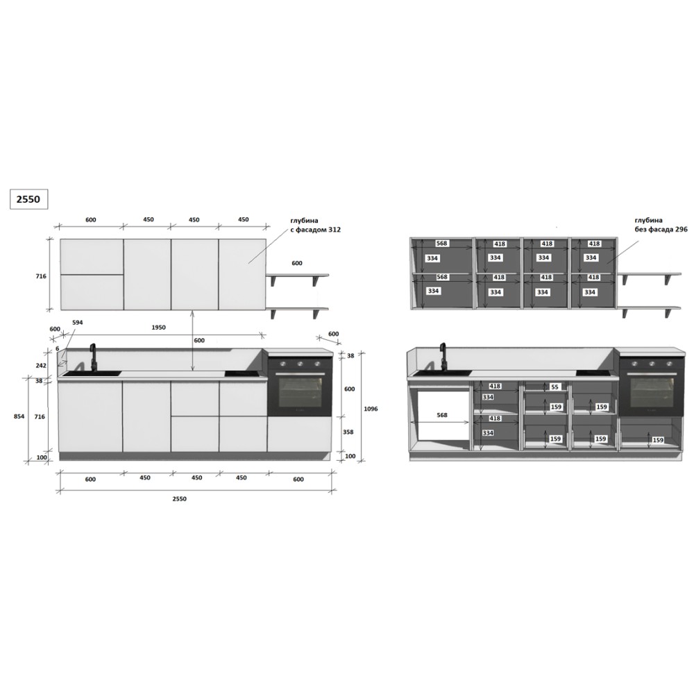 — Цельная столешница: без стыков и зазоров — больше гигиеничности и удобства в уборке.