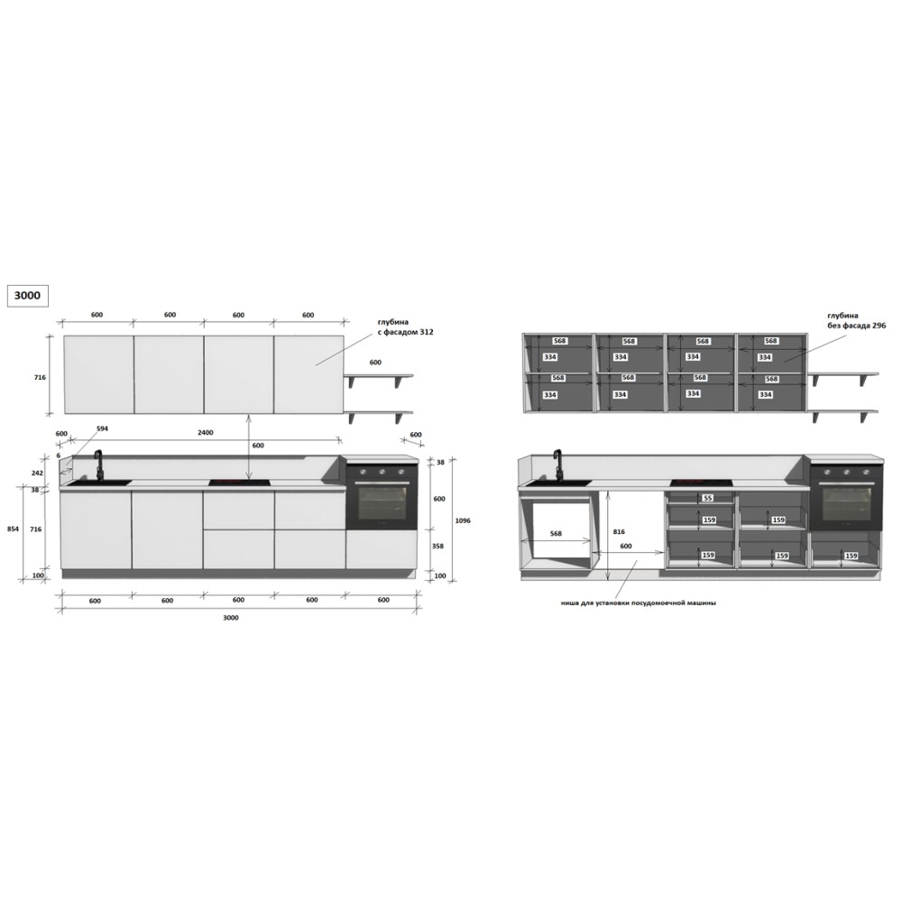 — Цельная столешница: без стыков и зазоров — больше гигиеничности и удобства в уборке.