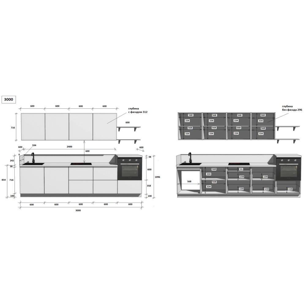 — Цельная столешница: без стыков и зазоров — больше гигиеничности и удобства в уборке.