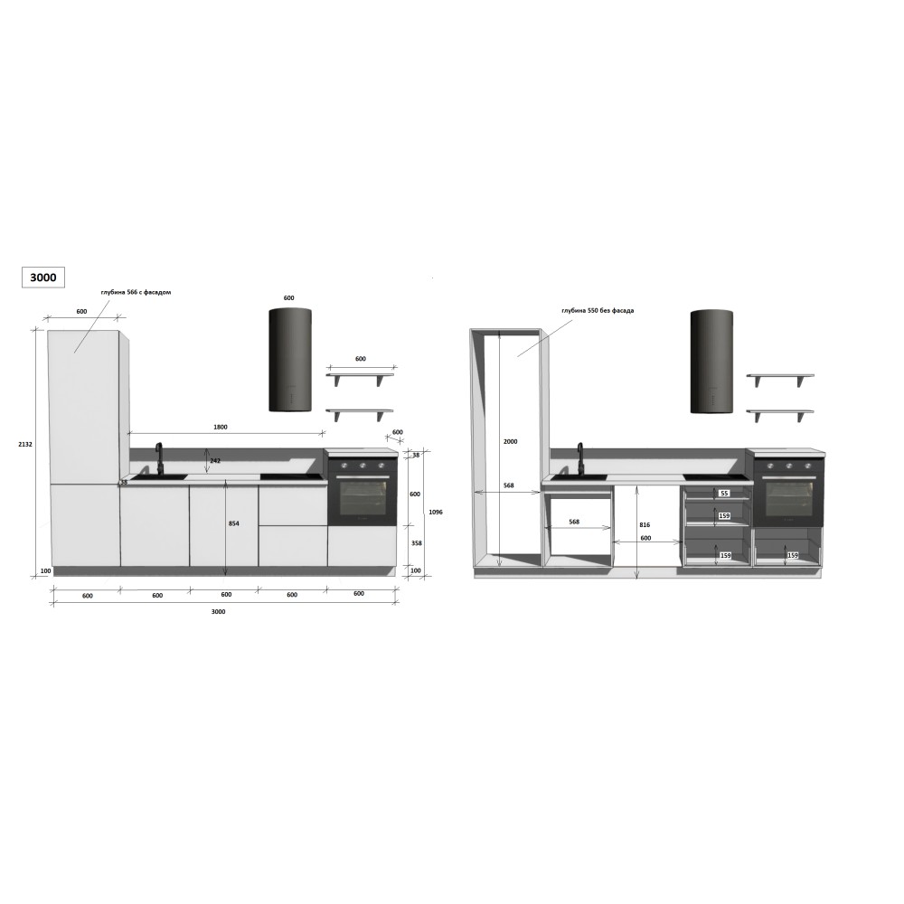 — Цельная столешница: без стыков и зазоров — больше гигиеничности и удобства в уборке.