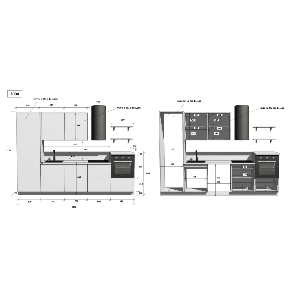 — Цельная столешница: без стыков и зазоров — больше гигиеничности и удобства в уборке.
