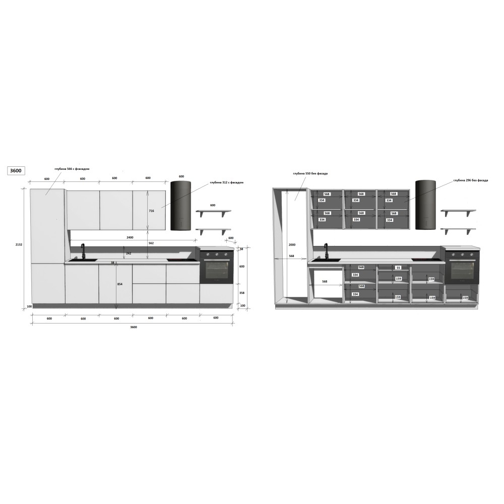 — Цельная столешница: без стыков и зазоров — больше гигиеничности и удобства в уборке.