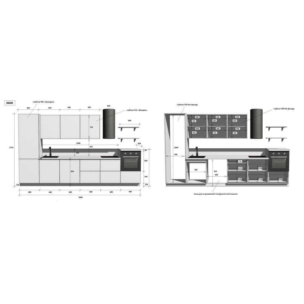 — Цельная столешница: без стыков и зазоров — больше гигиеничности и удобства в уборке.