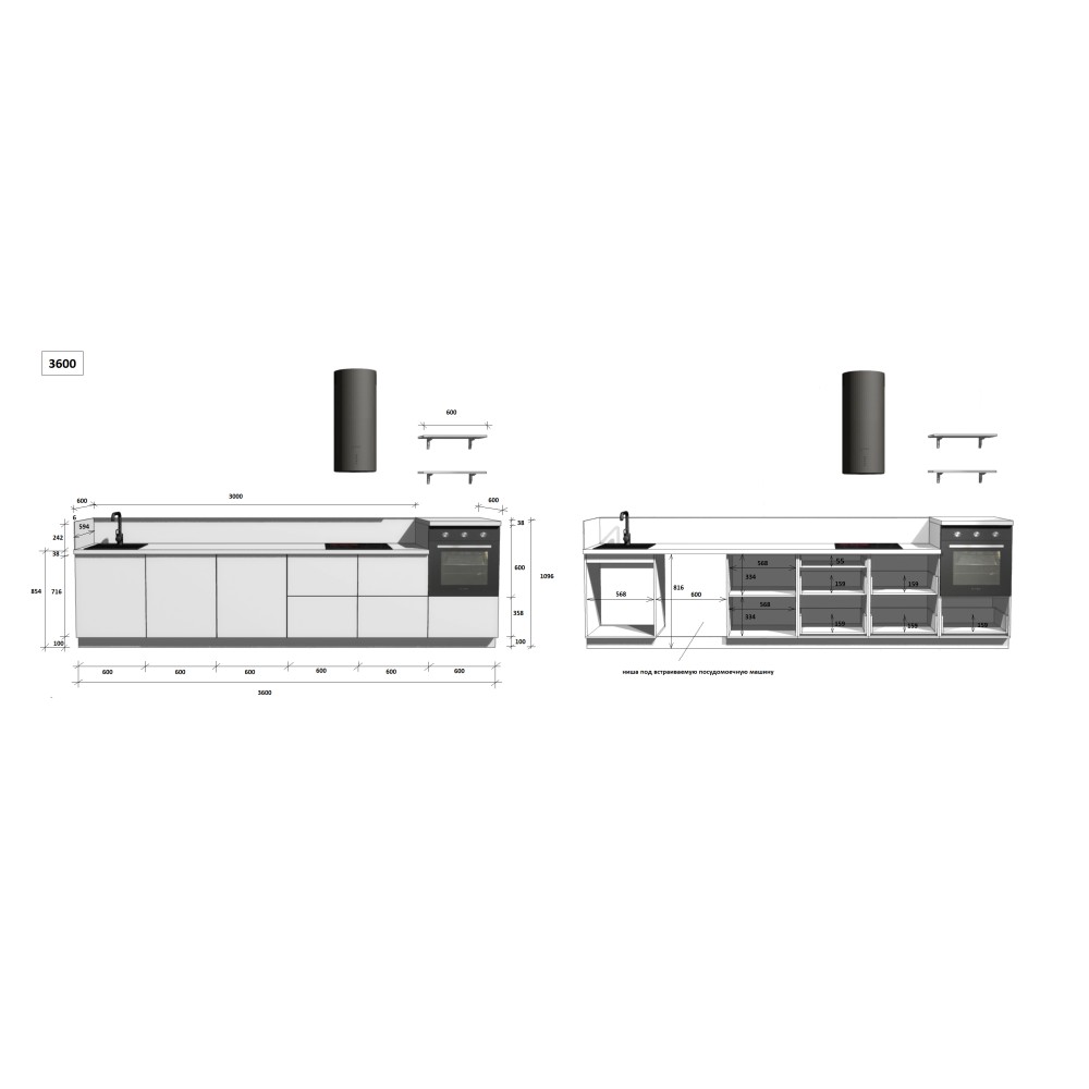 — Цельная столешница: без стыков и зазоров — больше гигиеничности и удобства в уборке.