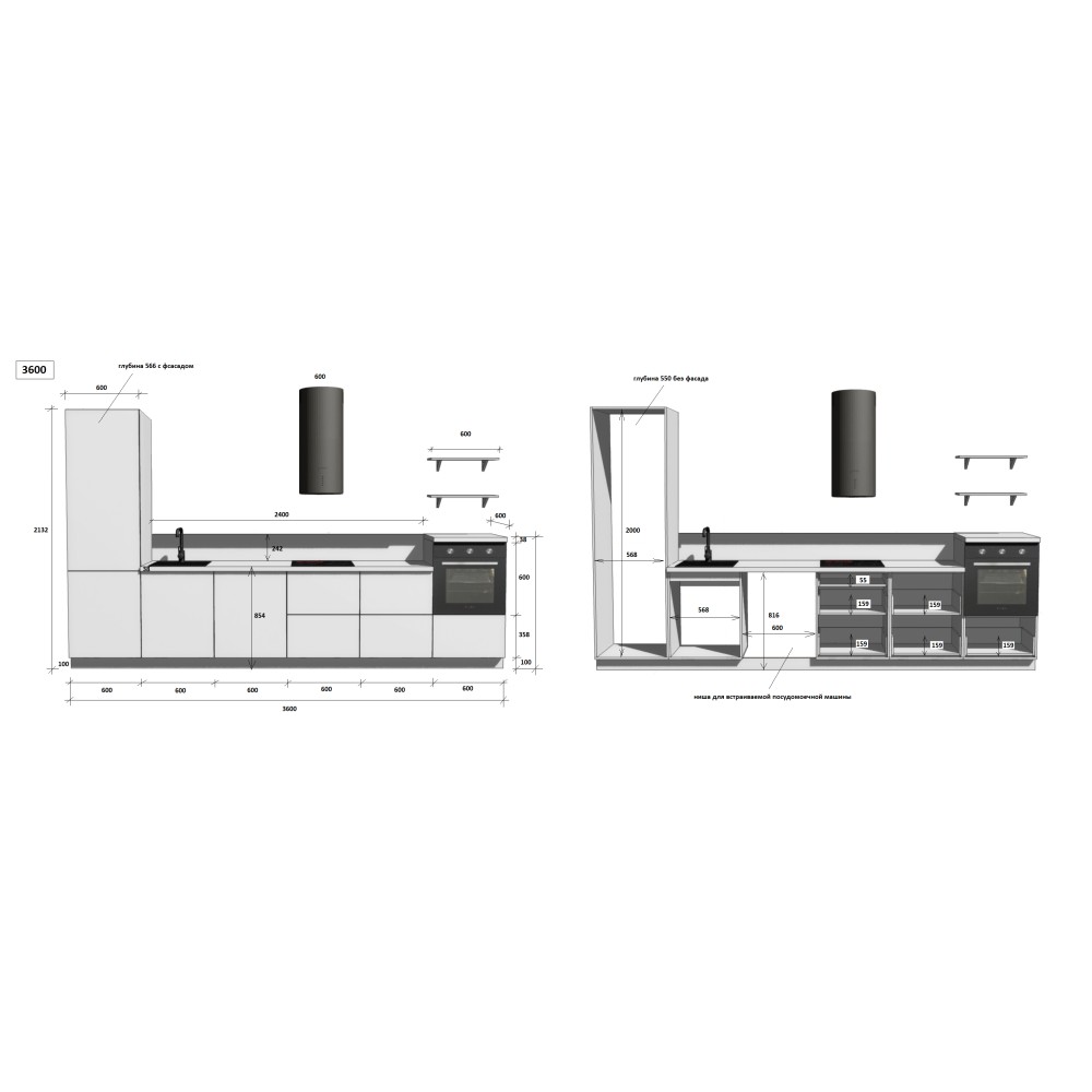 — Цельная столешница: без стыков и зазоров — больше гигиеничности и удобства в уборке.