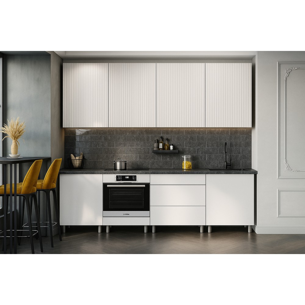 Готовая кухня Вектор - компактное и функциональное решение для вашего дома. Кухонный гарнитур сочетает в себе современный минимализм, эргономичность и надежность.